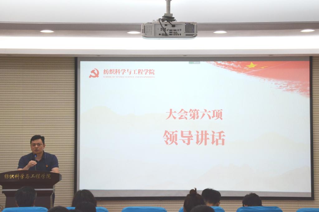仪式结束之后,纺织工程系教师、优秀共产党员支超代表受表彰先进集体和个人发言。他表示,作为党员教师,要注重加强理论学习,具有强烈的事业心和责任感,立足本职,开拓进取,带头弘扬正气,在岗位上和行动上创先争优。2016级纺织工程卓越班学生吴婵婵代表新党员发言。她说,作为新入党的同志要不断提升自己的政治素养,充分发挥党员的先锋模范作用,即使毕业离校,也要站好大学校园里的最后一班岗。