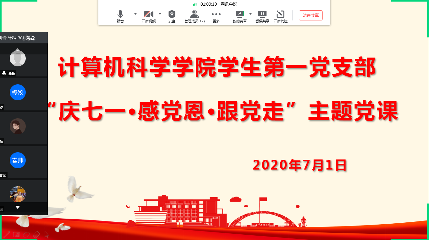“九万里风鹏正举,新征程砥砺初心”,为庆祝中国共产党成立99周年,计算机科学学院学生第一党支部于6月26日至7月1日开展了系列活动共庆党的生日。