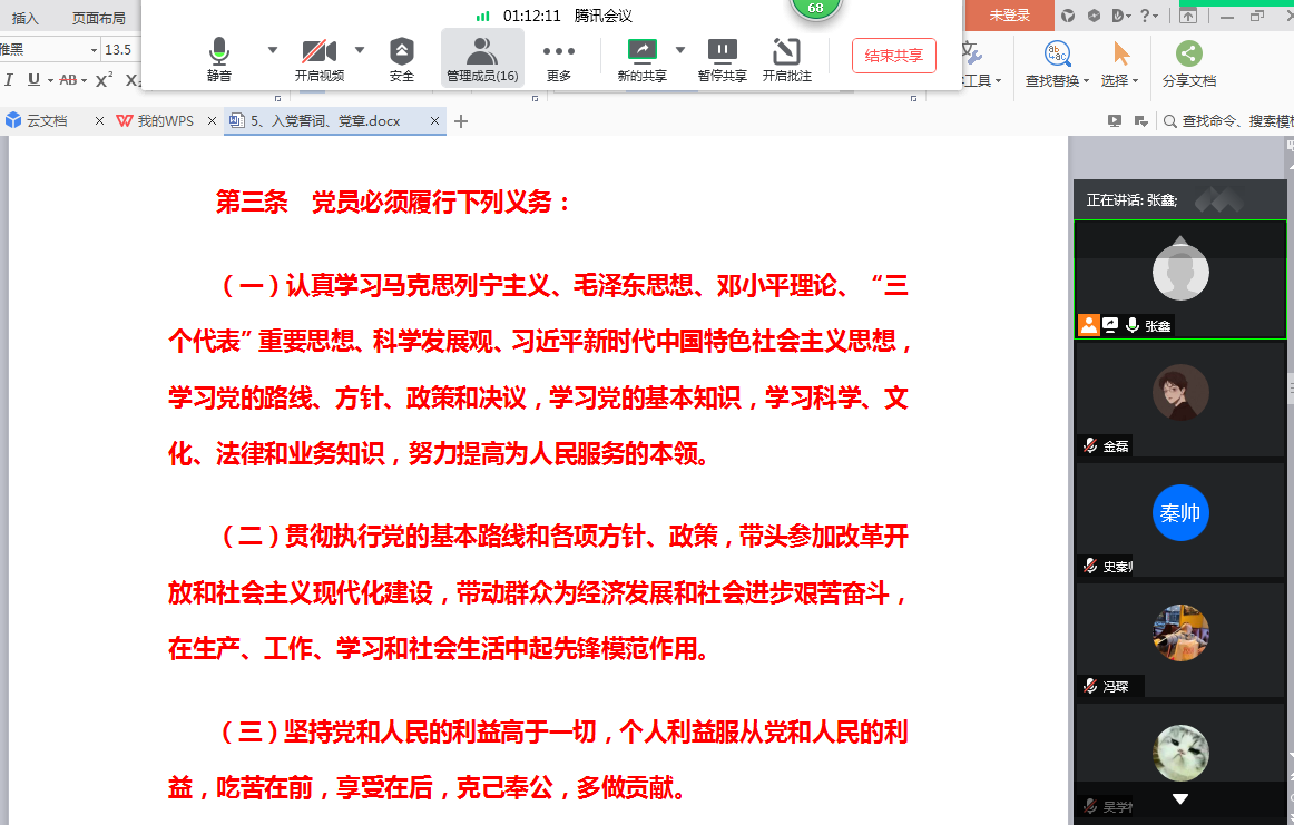 7月1日,正值党的99岁生日,支部又组织全体党员进行了“庆七一·感党恩·跟党走”主题党课的学习。在主题党课上,全体党员首先一起重温了入党誓词,不足百字、但铿锵有力掷地有声的誓词,是对共产党员的严格要求,这不单单是一份口头上的誓言承诺,更是一份沉甸甸的责任和坚定不移跟党走的信心与决心。随后,支部书记张鑫结合《中国共产党章程》中党员的八大义务给大家讲了一节生动的党课。他提到,党员义务是党章规定的要求,是每个党员对党应尽的责任,也是提高党员对共产主义事业的积极性与责任心,贯彻党的路线、方针和政策的有力保证。希望大家都能够清楚身为党员的每一项义务,创先争优,发挥好示范引领作用,做一名合格的党员。