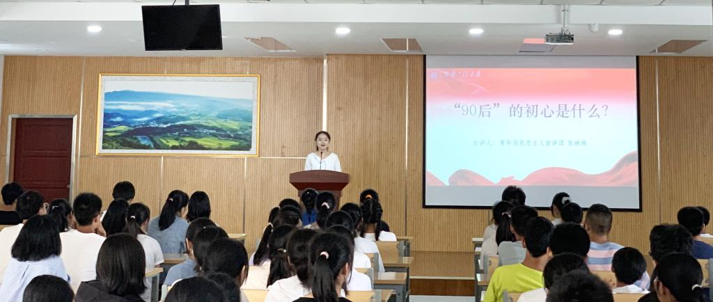 宣讲团成员张琳雅做了题为《“90”后的初心是什么?》的首场宣讲,阐述了“90后”的初心和使命,在面对新型冠状病毒肺炎疫情时,奋战疫情一线的“90后”们,用青春的力量托付起了青春的担当,书写出属于“90后”的战疫新篇章。同时,鼓励同学们要坚信抗疫必胜,坚定“四个自信”,要努力学习,争做德才兼备、全面发展的社会主义合格建设者和可靠接班人。宣讲团成员杨梦婷作了主题为《万众一心、抗击疫情,让党旗高高飘扬》的第二场宣讲,她用丰富鲜活的案例和高昂激情的语言从中国“战役”彰显了中国共产党领导是中国特色社会主义制度的最大优势,彰显了密切联系群众、紧密依靠人民战神各种磨难,推动国家发展的显著优势,彰显了全国一盘棋,调动各方面积极性,集中力量办大事的显著优势和彰显了积极参与全球治理,为构建人类命运共同体不断作出贡献的显著优势等四个方面进行了宣讲,为全体初中生上了一场精彩的思想政治理论课。