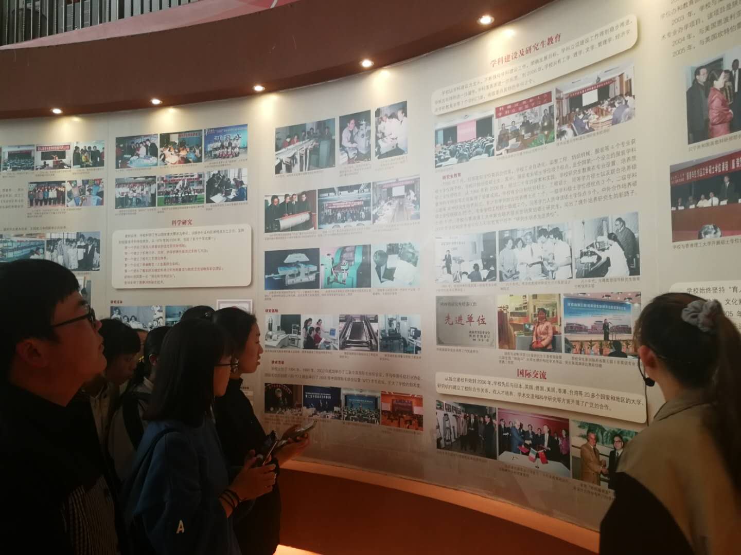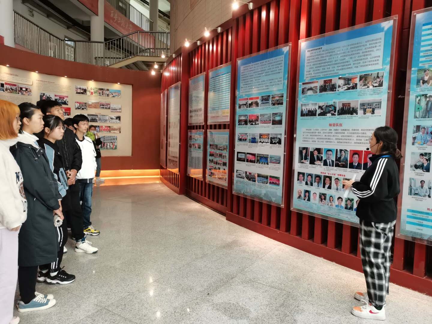 学院全体新生以班级为单位分六批依次参观了校史馆,在讲解同学的带领下,从一层展示的学校历史沿革、获奖情况,二层的布料介绍、服装展示,三层的优秀学生作品展示,全面学习了学校的办学历史和取得的成就。