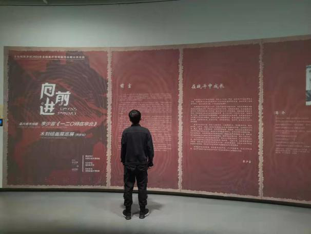 到达目的地后,大家有序进行一码通扫码,测温进入博物馆内部,分散观看展览的作品,表现出了极强的兴趣。博物馆二楼的向前进——重庆美术馆馆藏李少言《一二〇师在华北》木刻组画展颇为壮观,作品量巨大,充分体现了当时的时代背景。博物馆一楼和负一楼的从材料到观念——冯斌“‘中国画’新主张”研究生教学个案研究展也颇具特色,打破了传统的观念,在纱布以及玻璃上作画,表现力极强,令人惊叹。