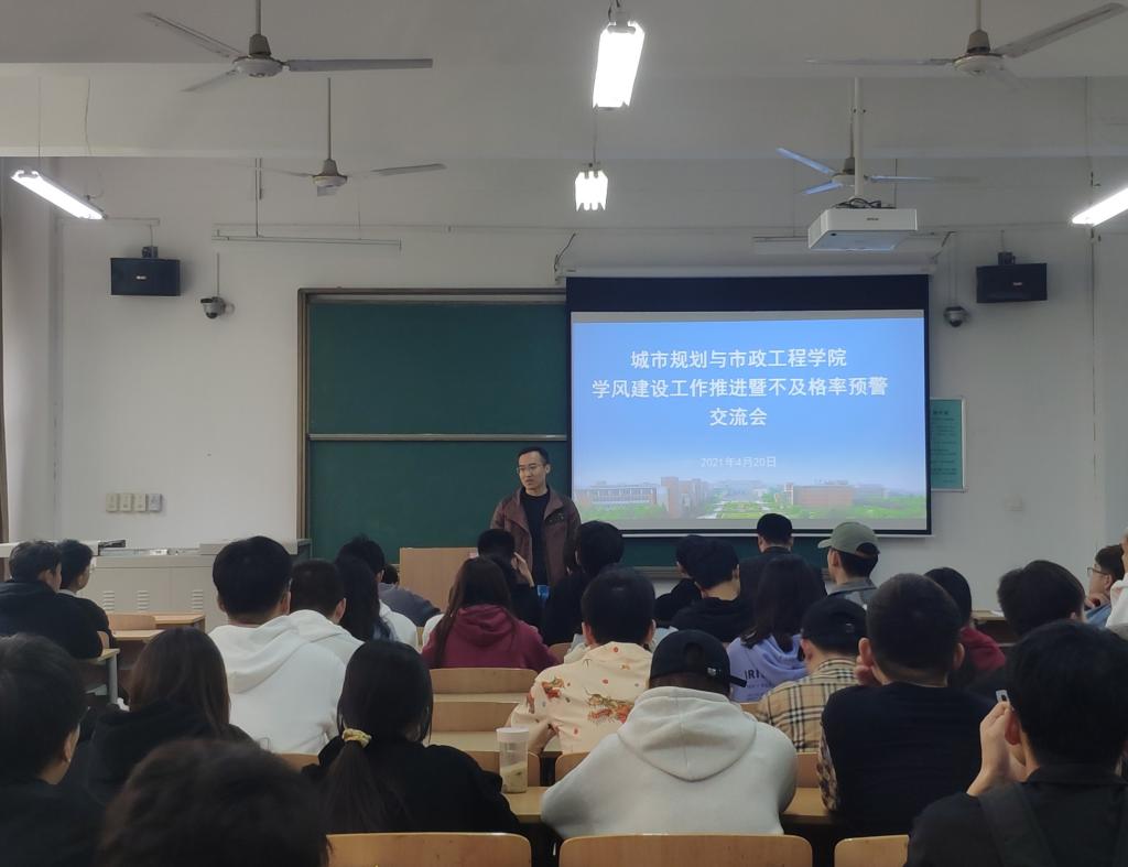 学风建设工作辅导员陆瑞成在分析学院2014级至今近6届学生不及格率情况的基础上,结合上学期不及格率情况,主要针对大学一二年级学生从三个方面开展不及格率预警:一是把握规律提早准备,从近6届学生一年级两学期不及格率趋势发现,大一下学期不及格率往往比上学期高3-4个百分点,而学院2020级是第一届按照土木工程大类招生的年级,学风建设工作更为重要,其第一学期挂科率达到7%高于以往各年级同期3个百分点,而本学期新增理论力学等难点科目,当应引起高度重视;二是了解规则提高警惕,学籍管理规定明确划定相应红线,在不及格学分达到本学期的1/3/、2/3、3/4时分别给予警告、降级、退学等处理,而且教育部明确规定取消毕业年级清考,所以重修科目不及格即意味着降级或退学,从近几年学生就业应聘情况看,企业对于学生成绩单越来越重视,挂科也意味着与好工作失之交臂;三是严守纪律多方协同督导,学生会学习部、学习委员严格课堂纪律考勤,全体班委舍长做好督促配合,对于学困生早发现早帮扶,对于难点科目各班要利用好早晚自习、宿舍微课堂等平台载体多途径加强辅导。