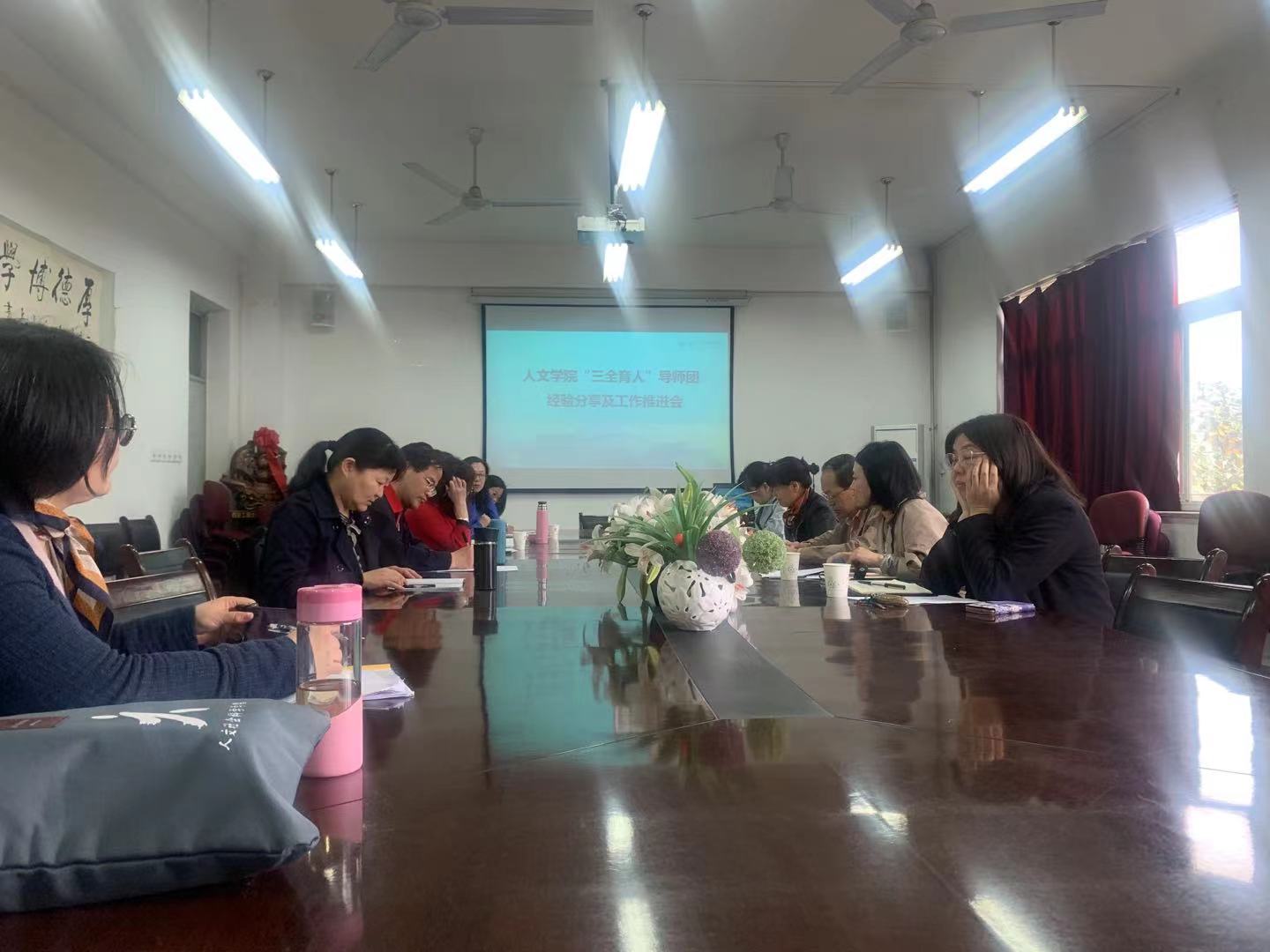 此次人文学院“三全育人”导师团经验分享暨工作推进会的成功召开,为今后更有效有力开展“三全育人”导师团工作奠定了基础。(撰稿:刘杨扬 审稿:徐利兰)