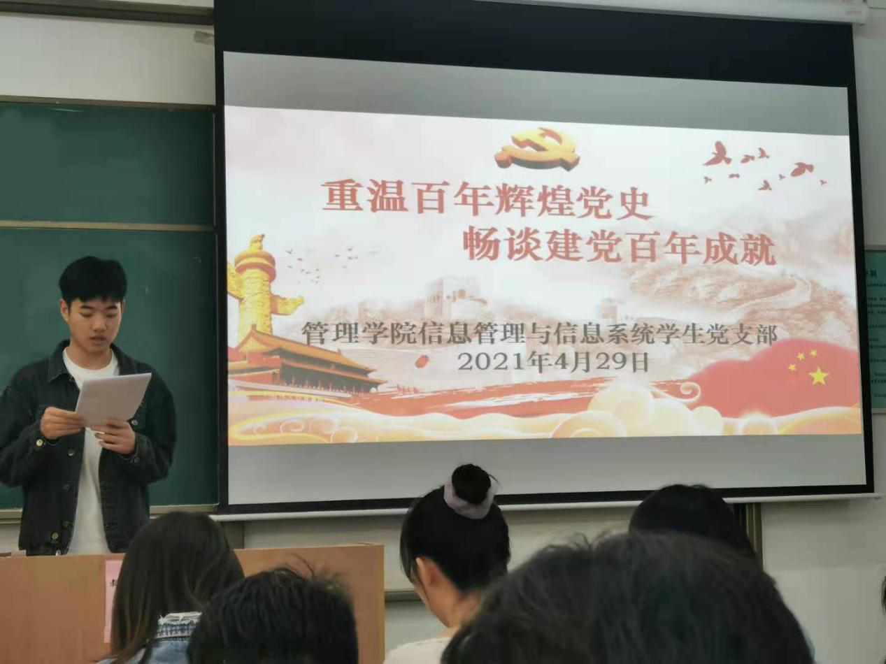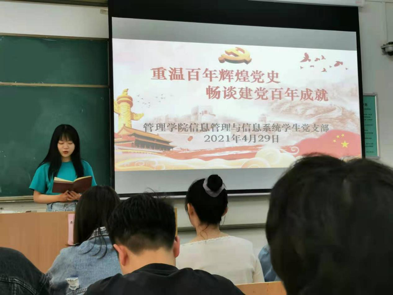 为加强党史学习教育统筹化规范化,全面了解中国共产党百年辉煌党史。管理学院学院信息管理与信息系统学生党支部于4月29日下午四点在教学楼A-128展开了温故百年党史为主题的组织生活会,本次会议由支部书记吴昌敏主持,信息管理与信息系统学生党支部全体党员及积极分子参加会议。