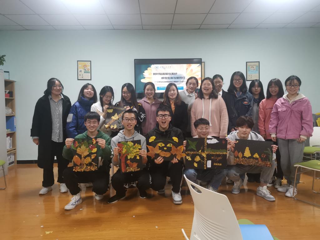 为进一步加强永利官网学生生命教育、感恩教育,提升心理健康水平,11月4日,在临潼校区行政楼131心理团辅室开展了主题为“树叶贴画留住美好 感悟生命与爱同学”主题团体心理辅导工作坊。活动由学生工作部主办,启明星辅导员工作室、心之桥辅导员工作室承办,全校共有20余名学生通过招募的形式参加活动。