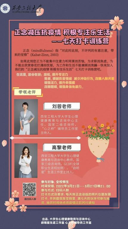 继续发挥课堂心理健康知识传播的主渠道,发挥课程育人实效。学校将大学生心理健康教育课程纳入人才培养方案,课程为2学分,32学时,实现了“线上+线下”全覆盖的课程体系。通过课堂授课,不仅向学生讲授了系统的心理健康知识,也让授课教师在“发现问题——提出问题——解决问题”的过程中,探索更多的方式方法,更好地服务于心理健康教育工作,强化课程育人品牌。同时以课程建设为依托,打造高校心理育人“同心圆”模式探索,并成功申报陕西高校辅导员工作精品项目。