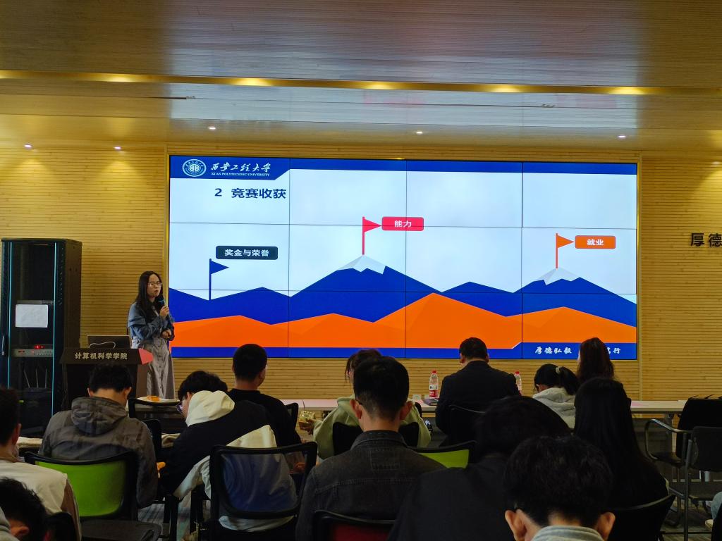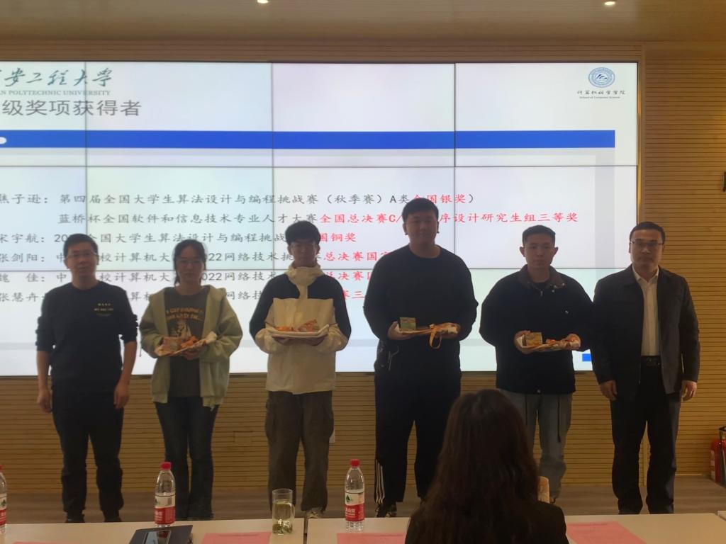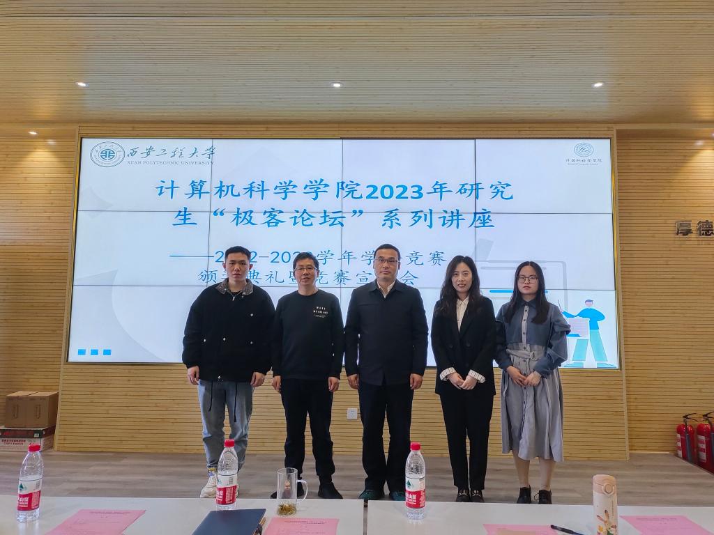 为进一步动员研究生积极参加科技竞赛,培养学生竞赛意识,提高学生竞赛参与度和竞赛作品质量,2023年4月6日,计算机科学学院在学院楼614报告厅举办研究生“极客论坛”第六期之2023年度学科竞赛颁奖典礼暨学科竞赛宣讲会。宣讲会由我院研究生毕明洋、宋宇航分别分享了参赛经历和感悟。学院党委副书记赵勇进、副院长张凯兵、研究生辅导员程帅以及一百余名研究生参加了本次活动。