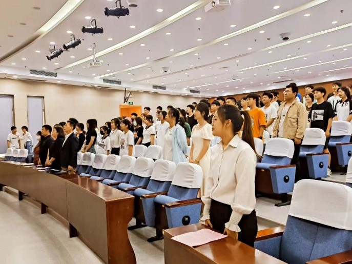 伴随着雄壮激昂的国歌声,开班仪式正式开始。首先,付成程向入党积极分子说明了举办本次入党积极分子培训班的重要性,强调入党积极分子要端正入党动机,树立共产主义远大理想。接着,朱宇军宣读了《yL23411永利官网登录纺织科学与工程学院关于举办2023年上半年入党积极分子培训班的意见》。学员代表2022级纺织工程卓越02班董涵同学表态发言,她表示将珍惜培训机会,提升自身能力,服从组织管理,遵守培训纪律,端正入党动机,发挥模范作用,更加坚定申请入党时的初心,在学习生活中勇于创新、甘于奉献、精益求精,同时作为纺织人积极传承“梦桃精神”,让“梦桃精神”进一步发扬光大。