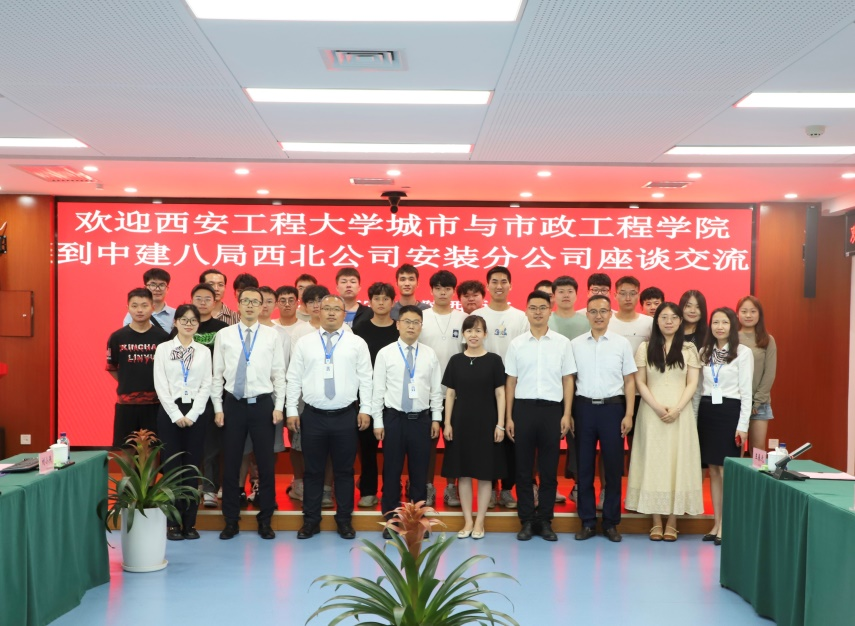 在中建八局西北安装分公司,李磊总经理代表公司对我院师生一行表示欢迎,并介绍与会企业方代表。大家一起观看了中建八局西北分公司宣传片,办公室主任苟德轩介绍了安装分公司的情况,综合办公室业务主办张璇梓介绍了公司人才培养和薪资待遇等情况。毕业生围绕假期实习、企业见习和入职后的成长等关心的问题进行了提问,刘小燕经理和我院校友、分公司采购中心主任张探龙作了一一解答。