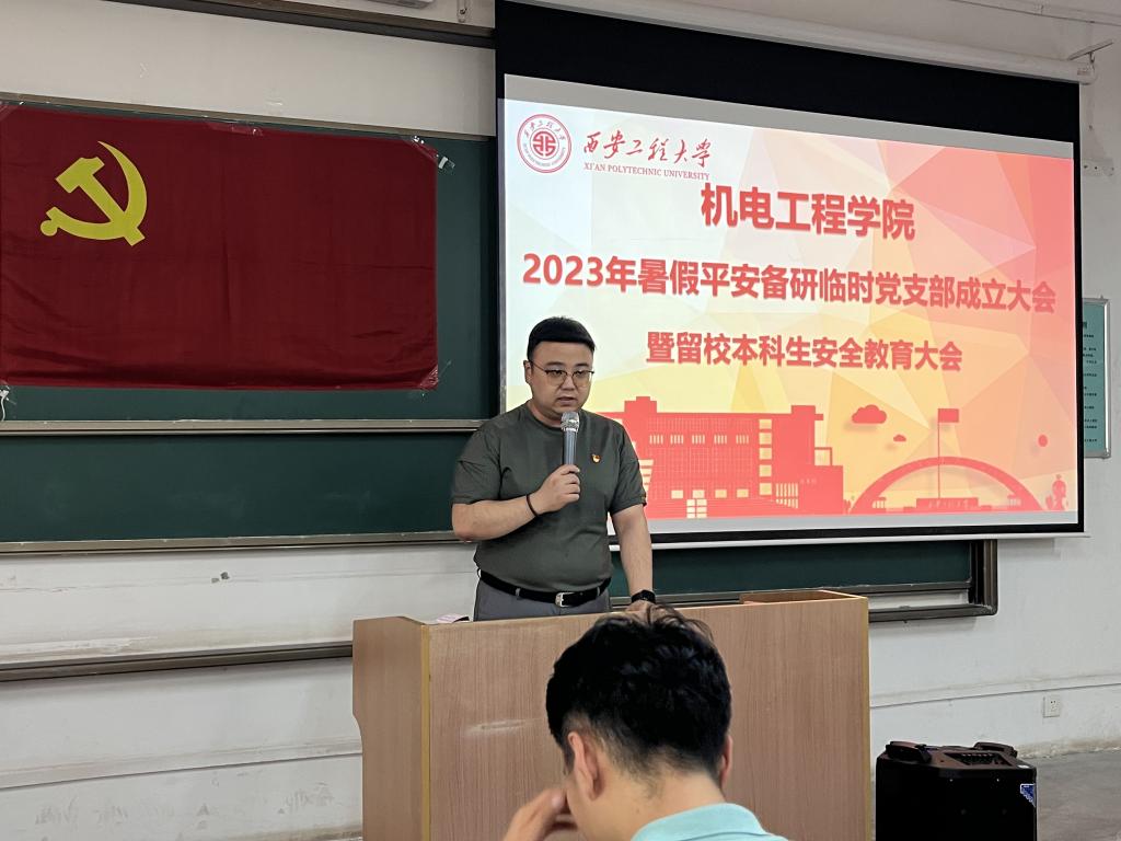 7月14日下午,机电工程学院召开2023年暑假平安备研临时党支部成立大会暨留校本科生安全教育大会,院党委书记阚佩、党委副书记冯翊、辅导员刘鹏和留校学生参加了此次会议,会议由2020级辅导员李菁菁主持。