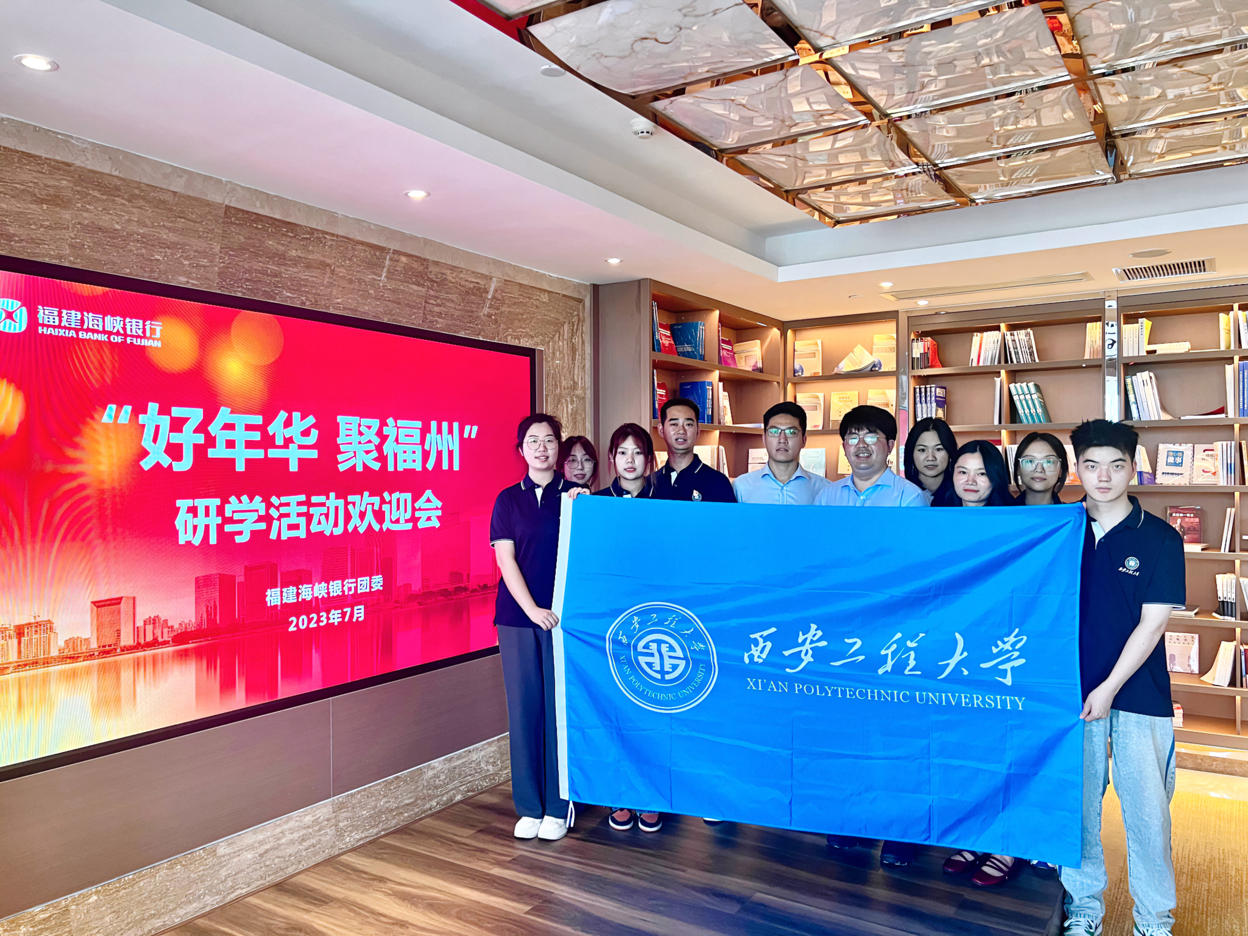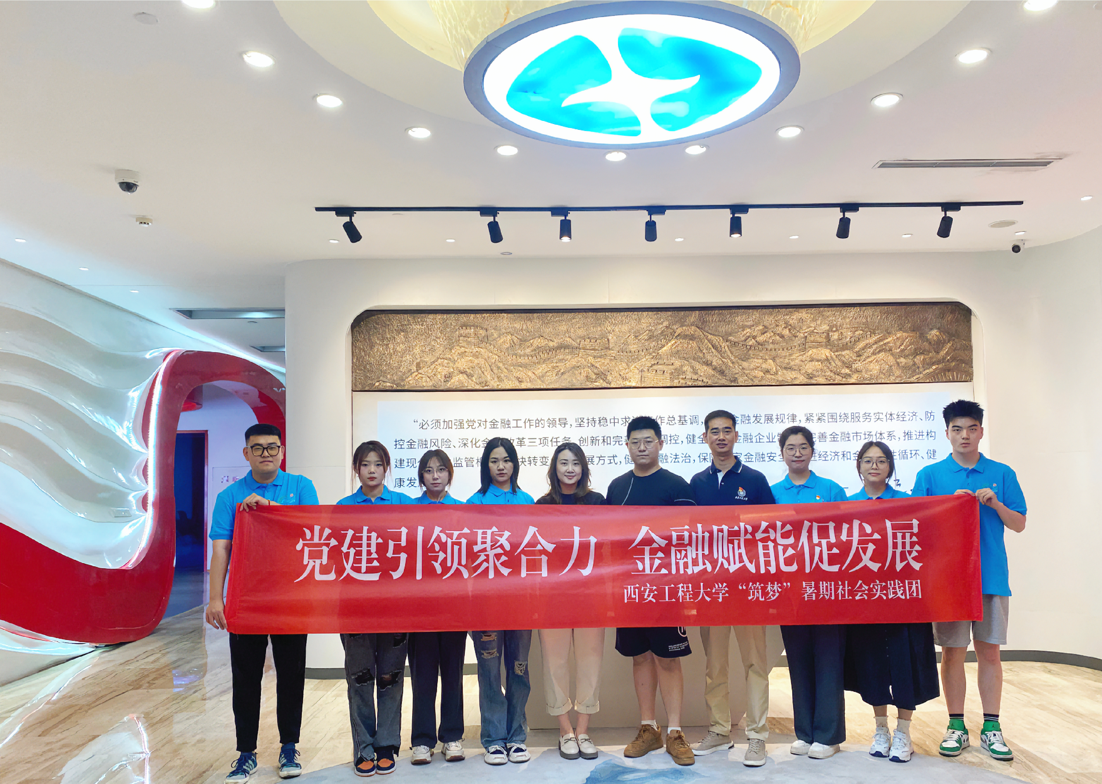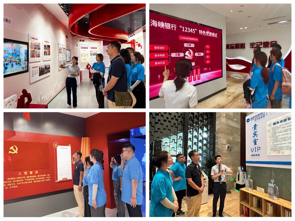 “政治课堂”筑牢思想根基,提升“愿为”的思想觉悟。实践团在指导老师吴昌敏的带领下,历经28小时,跨越1700余公里,到达福建省福州市开展社会实践,在福州团市委工作人员的安排下,走进福建海峡银行总行大楼、营业网点参观了解银行运行情况及金融业历史脉络。实践团重点参观了福建海峡银行党员政治生活馆,该馆以福建海峡银行“12345”特色党建模式为主线,是福建海峡银行党委坚持党的领导、加强党的建设、发挥党建引领作用、推动党建业务深度融合发展取得显著成效的重要展示平台,是广大党员干部党性教育的主阵地、建功立业的展示窗、学习交流的新平台。通过党员政治生活馆的参观学习,实践队员们在重温党的光辉历史的同时,也更加全面系统地了解福建海峡银行的企业文化。团队中的党员同志们在吴昌敏的带领下重温入党誓词,面向鲜红的党旗,在铿锵的誓言中,同志们的理想信念更加坚定。