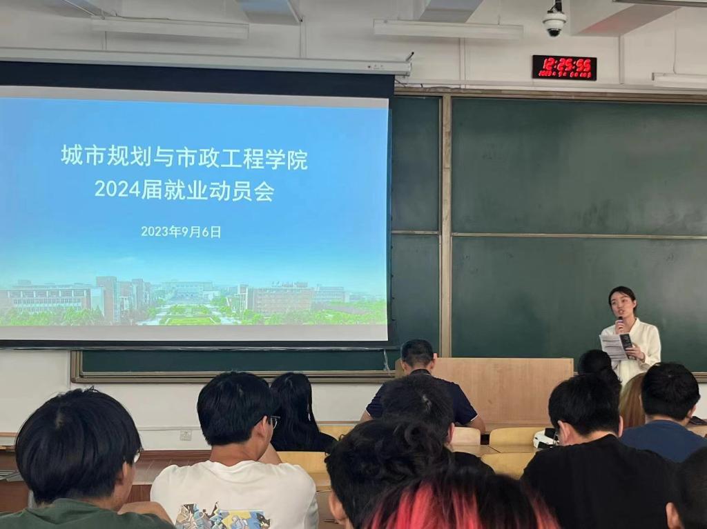 9月6日下午,城市规划与市政工程学院在临潼校区B-133教室召开“2024届毕业生就业动员会”。学院党委副书记鱼园、团总支书记、就业辅导员陆瑞成、毕业班辅导员王春元、中建科技西部公司人事部经理曾秋月以及2024届全体本科毕业生参加会议。会议由王春元主持。