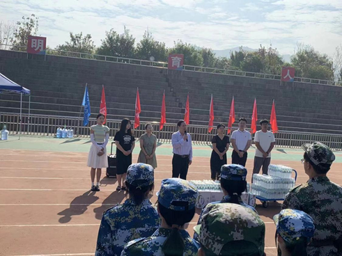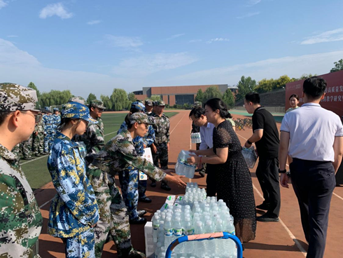 身着戎装展军姿,士气高昂铸军魂。为增强新生参训的热情,鼓励新生坚持完成军训。9月6日上午,院党委书记杨友谊、党委副书记周晓惠,全体辅导员来到东环操场,为参训学生、教官带来慰问。