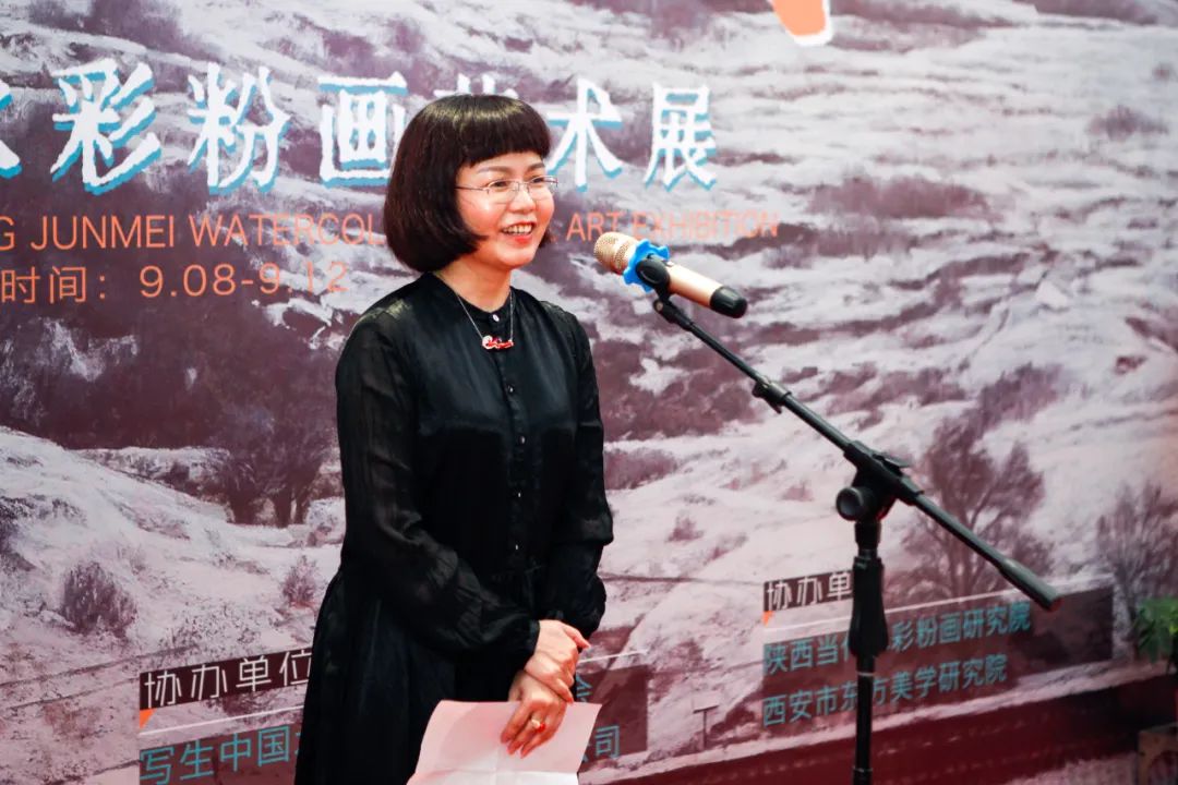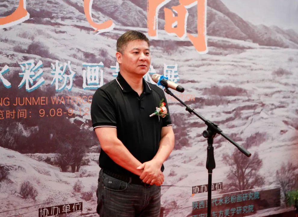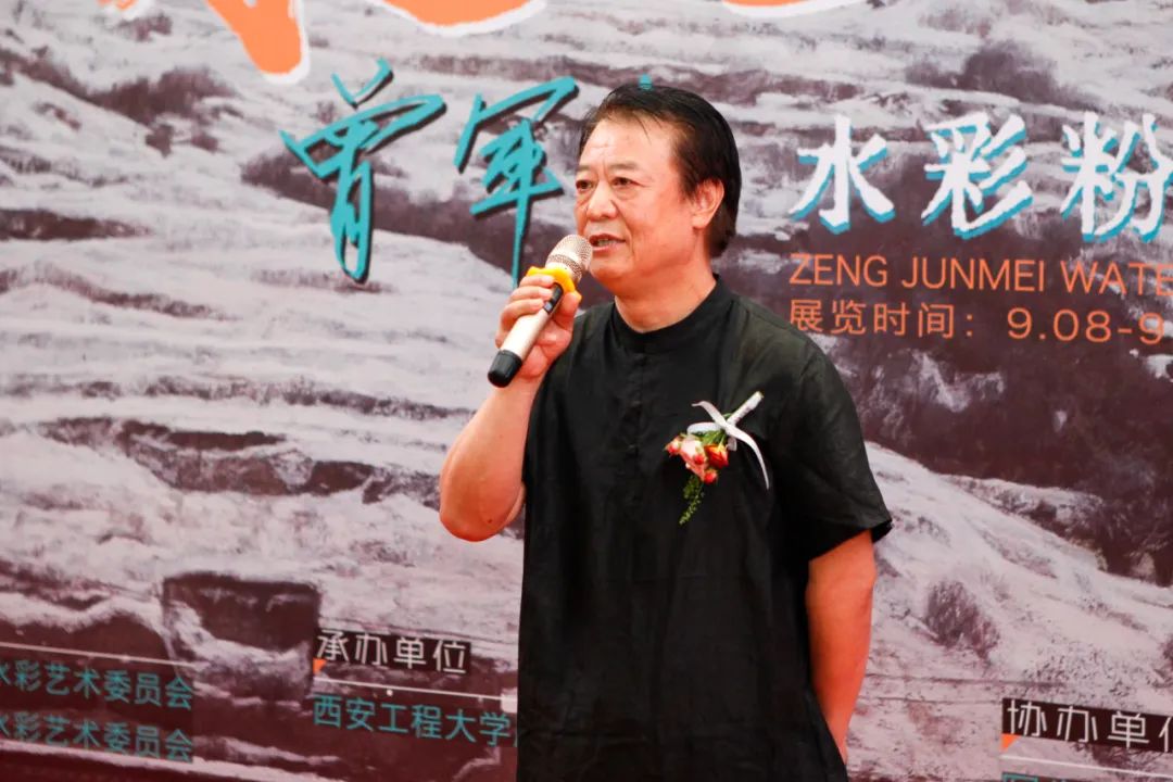 开幕式上,巨石、蔺宝刚、史涛在开幕式现场分别致辞,他们对学校支持陕西美术行业发展表示感谢,对曾军梅画作的立意和表现手法予以充分肯定,倡导广大水彩画家们以人民为中心进行创作,不断推出反映时代主题的佳作,为弘扬中华优秀传统文化贡献力量。吕钊致辞并宣布开幕,他表示,曾军梅老师长期耕耘在教学科研一线,本次水色之间画展出100余幅作品是她近年来的精品力作,是她讴歌美好生活,颂扬祖国的大好河山和建设面貌的真情流露。她的作品倾注了写实的力量,非常难能可贵。