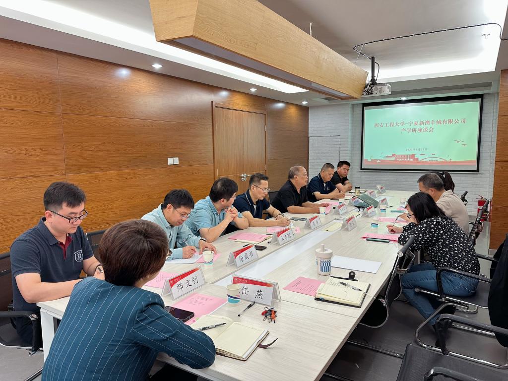 近日,宁夏新澳羊绒有限公司董事长兼总经理王华、浙江新澳纺织股份有限公司副总经理陈星、宁夏新澳羊绒有限公司办公室主任王婷一行三人来永利官网大学科技园进行产学研座谈交流。大学科技园主任王志刚,纺织科学与工程学院院长孙润军、党委书记李伟、副院长王耀武以及多名学院教授参加了本次座谈会。会议由王志刚主持。