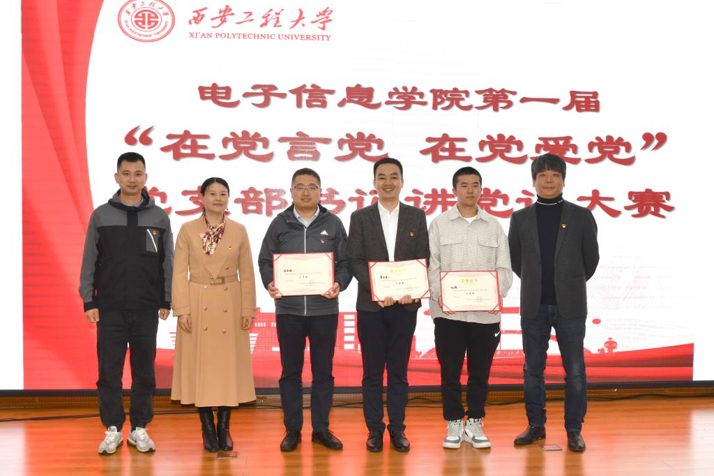 党委组织部正处级组织员李喜峰,管理学院党委书记王爱华,党委宣传部副部长傅博娜,服装与艺术设计学院副处级组织员吴艳杰,马克思主义学院中国近代史纲要教研室主任、陕西省思政课大练兵“教学标兵”赵鹏,陕西省辅导员职业能力大赛二等奖获得者、陕西省思政课大练兵“思政课程教学标兵”王志刚出席大赛并担任评委。电子信息学院党委书记杨友谊、副书记周晓惠、副处级组织员张琪,学院各党支部书记以及各学生支部的党员代表和入党积极分子代表观摩了比赛。大赛由张琪主持。