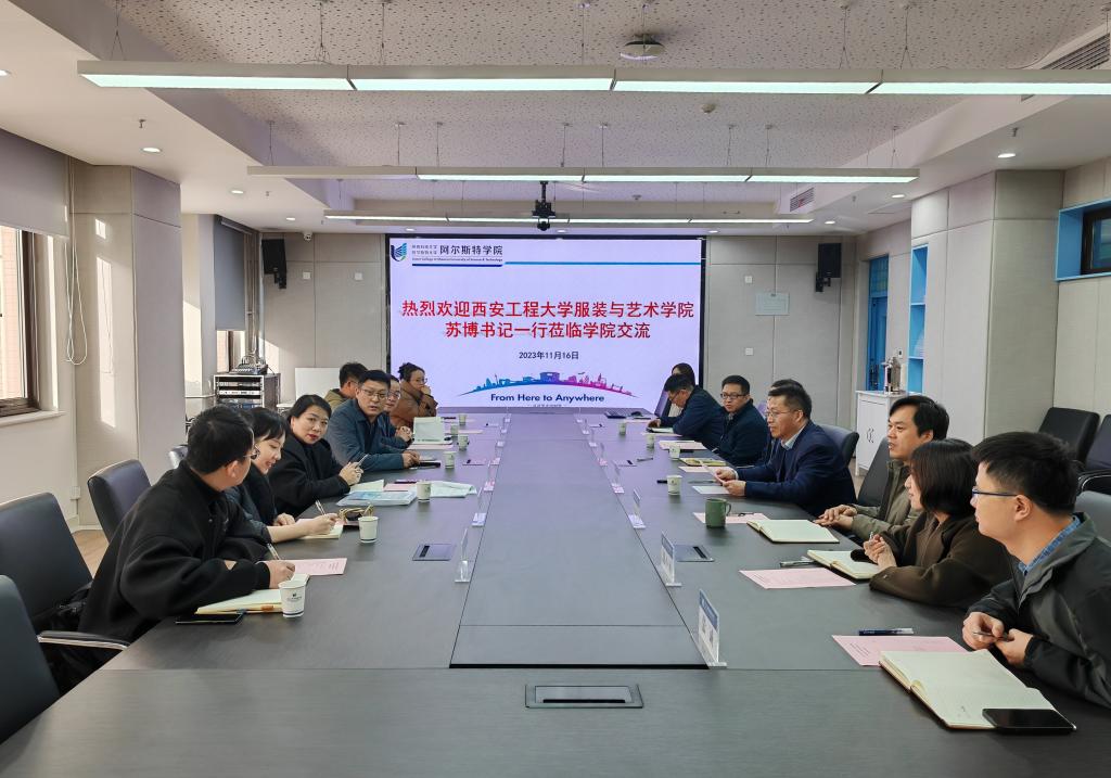 11月16日上午,永利官网招生就业工作处、服装与艺术设计学院赴陕西科技大学阿尔斯特学院进行中英合作办学相关事宜调研,服装与艺术设计学院党委书记苏博、副院长袁燕,招生就业工作处副处长(主持工作)付刚、招生办公室副主任车骏以及中英合作项目小组成员参加调研,陕西科技大学阿尔斯特学院党委书记贺涛、学院常务副院长薛朝华、副院长王伟伟,招生办公室主任王志东、副主任王宁及学院办公室、教务办公室、学生工作办公室相关人员参加座谈会。