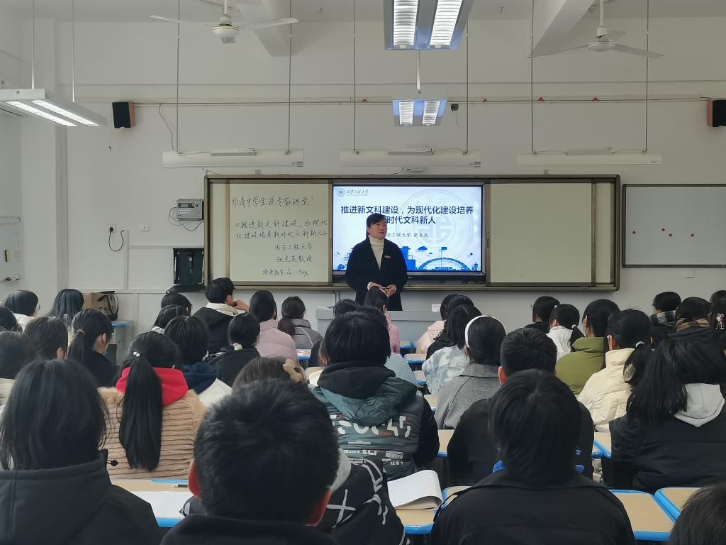 张克英为华清中学同学们作了《推进新文科建设,为现代化建设培养新时代文科新人》为主题的讲座。通过介绍学校历史与专业特色对yL23411永利官网登录进行了总体推介,围绕当前新文科建设面临的挑战和机遇,尤其是新文科建设的新理念、新方式和新方法,着重展望未来新文科建设的时代使命,使中学生们充分了解了新文科建设的相关知识与发展前景,对自己今后想要报考的专业以及未来的发展方向进行提前思考规划。专题讲座结束后,张克英与现场的学生们进行了亲切的互动,激励学生要坚定信念,认真学习,怀揣梦想,励志前行。