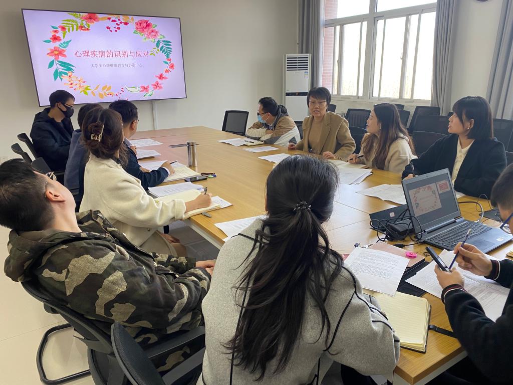大学生心理健康教育与咨询中心主任刘蓉老师通过讲述《心理疾病的识别与应对》,分享了一些学生心理问题案例,对学生心理问题防范和危机事件处理提出了针对性建议,她强调,要通过举办丰富多彩的文化活动做好学生心理健康教育,引导学生树立正确的人生观,培养学生的健全人格,为学生心理健康打下良好基础。高黎老师运用积极心理学,强调了关注大多数学生心理健康的重要性,做到日常心理健康知识科普。屈展老师讲解了心理疾病的表现方式及面对心理疾病的学生我们应该如何做。