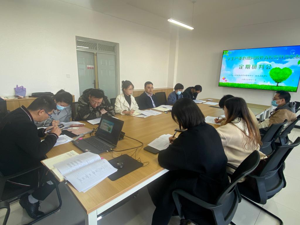 为进一步加强和规范学院心理健康教育与心理危机干预工作,提升学生心理危机排查和处置工作效率,促进“学校-学院—班级-宿舍”四级预警防控体系的建立和完善,加强学校心理健康教育与咨询中心与学院的危机干预工作沟通、协商与指导、服务。2023年11月23日机电工程学院在机电楼310会议室召开促进学生心理健康校院联席机制定期研讨会,大学生心理健康教育与咨询中心全体老师和机电学院全体辅导员参加了此次研讨会。会议由机电工程学院党委副书记冯翊主持。