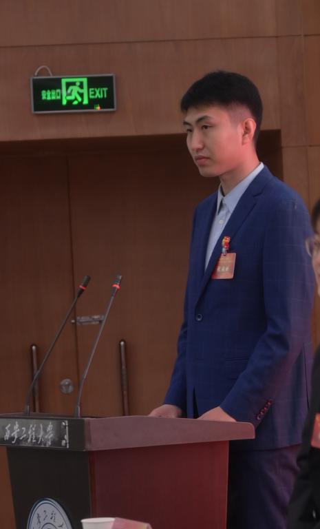 阚佩代表学院党委向大会的召开表示热烈的祝贺,对长期以来支持学院共青团事业发展的校团委及兄弟学院表示感谢。他肯定了学院团委依照“凝聚青年、服务大局、当好桥梁、从严治团”的工作格局所取得的成绩。他向全院团员青年提三点希望和要求:一是胸怀理想,志存高远。要以“长风破浪会有时,直挂云帆济沧海”的魄力,坚定理想信念,砥砺“想干事”的志气。二是永不言弃,坚韧不拔。要以“黄沙百战穿金甲,不破楼兰终不还”的豪情,践行初心使命,淬炼“能干事”的骨气。三是请党放心,强国有我。要以“宝剑锋从磨砺出,梅花香自苦寒来”的韧劲,锤炼能力本领,筑牢“干成事”的底气。