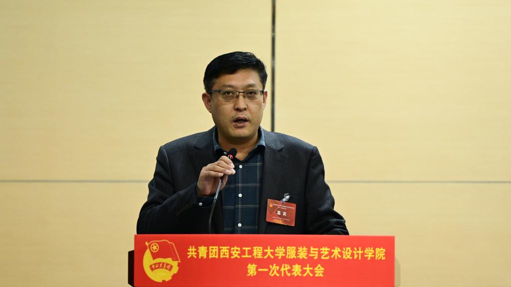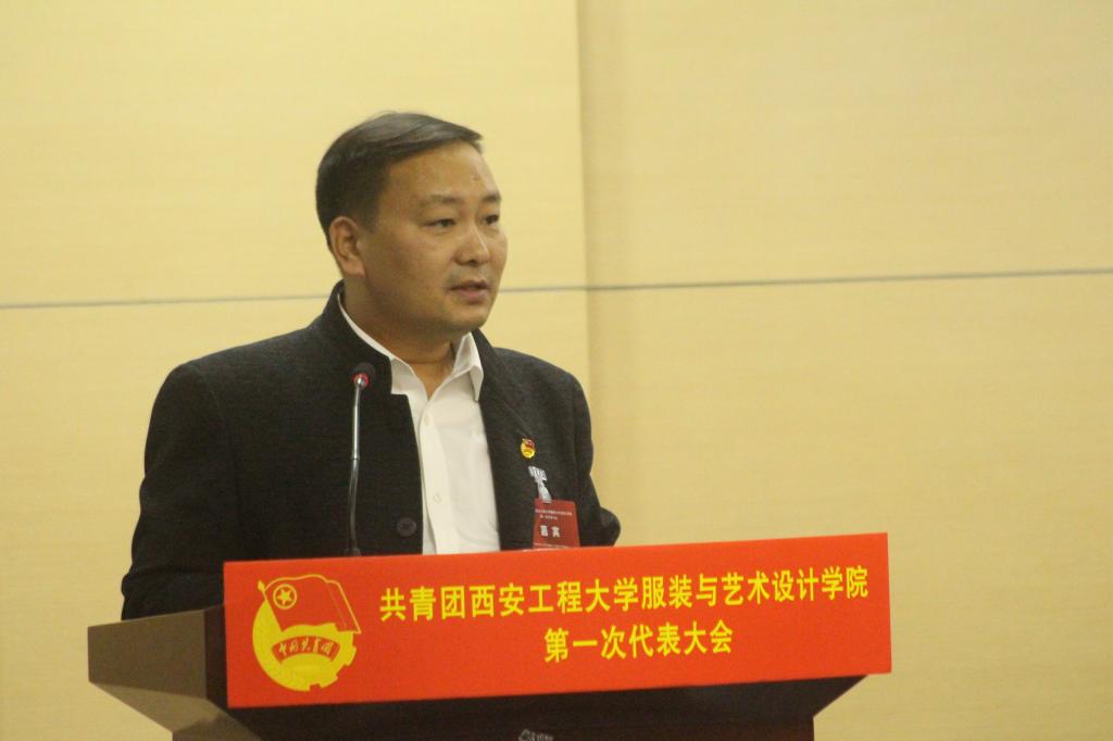 服装与设计学院党委书记苏博进行致辞,他首先介绍了参加本次大会的青年教师代表,接着从“团”字出发,分享了他对于共青团的认识。他讲到:团的力量举足轻重,共青团是在我们党的伟大事业中历经锤炼和考验的重要力量,我们要围绕中心工作抓好团建,在新形势下,共青团必须一如既往地围绕党的中心任务开展工作,并不断改革创新。他希望共青团员要立志争先,广大团员青年要清醒地认识到自己的特殊身份,有志有为,敢做敢拼,勇作表率,敢为人先。学院需多措并举培育骨干,要精心打造一支政治强、业务精、作风好的专兼职团干部队伍。最后,他希望广大团员青年团结奋斗,携手并进,奋力书写新时代服装学院高质量发展新篇章,与学校各部门、兄弟学院一起继续朝着特色鲜明、国内知名的教学研究型大学迈步奋进。