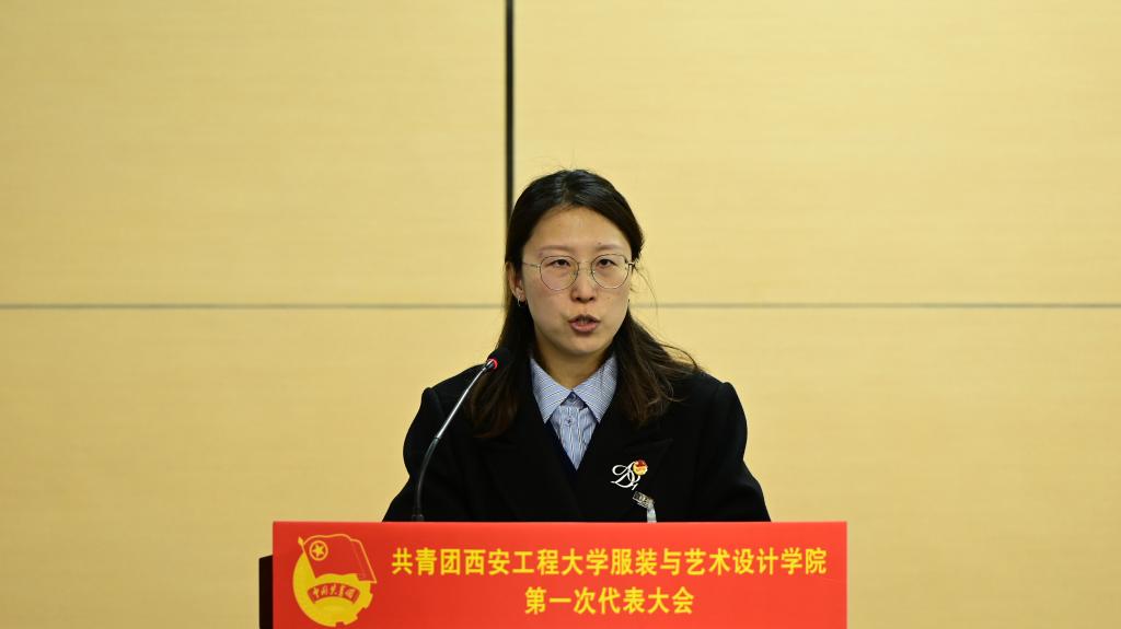 服装学院团委书记马薏雯从“回顾砥砺奋进的发展历程、总结改革发展中的经验与不足、展望新时代共青团工作的光辉前景”三个部分向大会做工作报告。重点谈到在未来共青团的工作中,要学习贯彻党的二十大精神,提升青年思想政治引领;落实新时代全面从严治团,不断加强团的自身建设;聚焦青年“急难愁盼”问题,提高服务青年工作水平;深入实施青春建功“十四五”行动,发挥青年作用。
