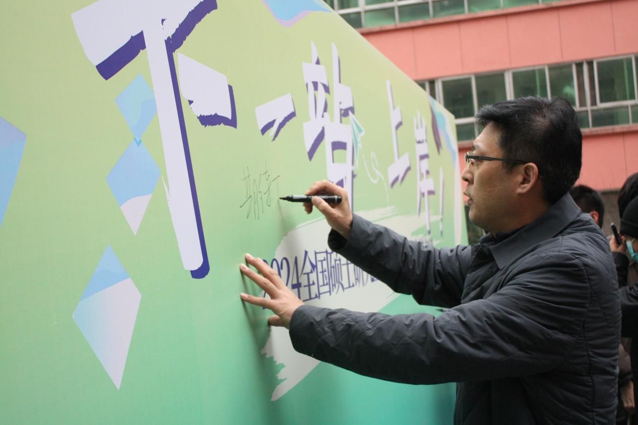 在活动启动仪式上,服装学院党委书记苏博为在场的考研学子们送上祝福。他分享了自己的考研经历,就当前考研形势为大家具体分析了考研的益处,并从新时代加强党的建设、以人民为中心的发展观、绿水青山就是金山银山的生态观等角度分析考研题目,帮助学生们坚定考研目标,增强考研信心,提前做好考研选择与规划。听了苏博书记的分享后,考研学子们纷纷在签名墙上留下了自己的签名和决心,并表示将在接下来的备考阶段,以积极的态度、强健的体魄面对研究生入学考试。活动现场,学生会的学弟学妹们为考研学子送上考研加油包和亲手制作的祝福卡片,给予学长学姐鼓励与温暖。