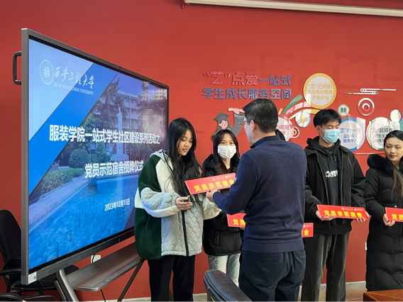 12月15日,为深入学习贯彻习近平新时代中国特色社会主义思想和党的二十大精神,切实开展“一站式”学生社区建设,充分发挥党员示范宿舍“一名党员,一面旗帜”的作用,服装学院党委在学院“‘艺’点爱一站式学生成长服务空间”对前期通过申请评选的党员示范宿舍36间举行授牌仪式。院党委书记苏博、副书记郭欣欣、副处级组织员吴艳杰、辅导员王盼以及学生代表40余人参加活动,郭欣欣主持活动。