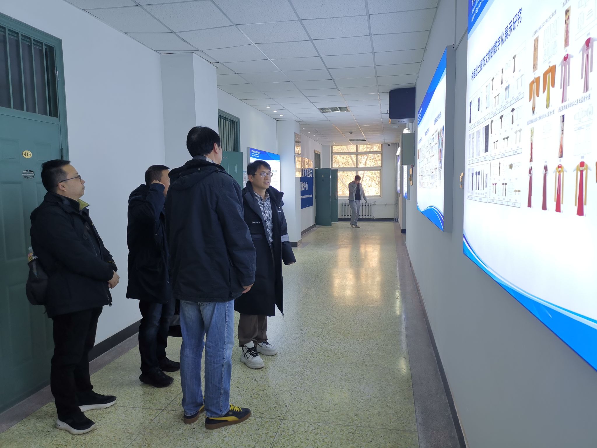 座谈结束后,在任军、吴龙、王勃及实验室老师带领下共同参观了服装学院楼、实验室、陕西省服装工程技术研究中心和大学科技园学院教师工作室。詹俊表达感谢,他说此次考察很成功,希望今后继续加强两院之间的交流与合作,也非常欢迎学院到浙江科技大学访问。(撰稿:吴龙 任军 审稿:吴艳杰 )