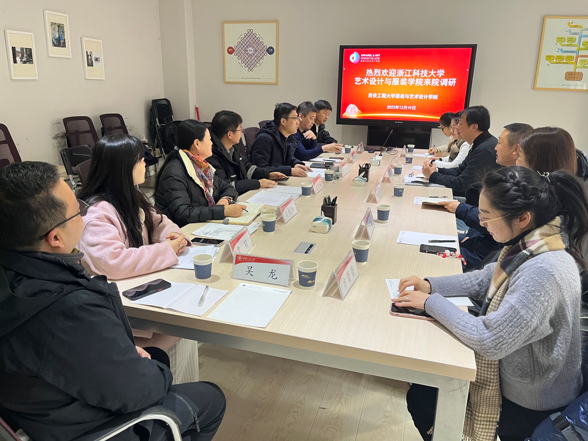 12月19日上午,浙江科技大学艺术设计与服装学院党委书记詹俊一行六人来永利官网服装与艺术设计学院进行交流考察。双方在金花校区服装楼三楼会议室就党建工作、学科建设、人才培养等方面进行深入交流。院党委书记苏博、副院长刘凯旋、副处级组织员吴艳杰、服装工程系主任任军、副主任吴龙,表演系主任王勃以及实验室主任贾莉参加座谈,苏博主持座谈会。
