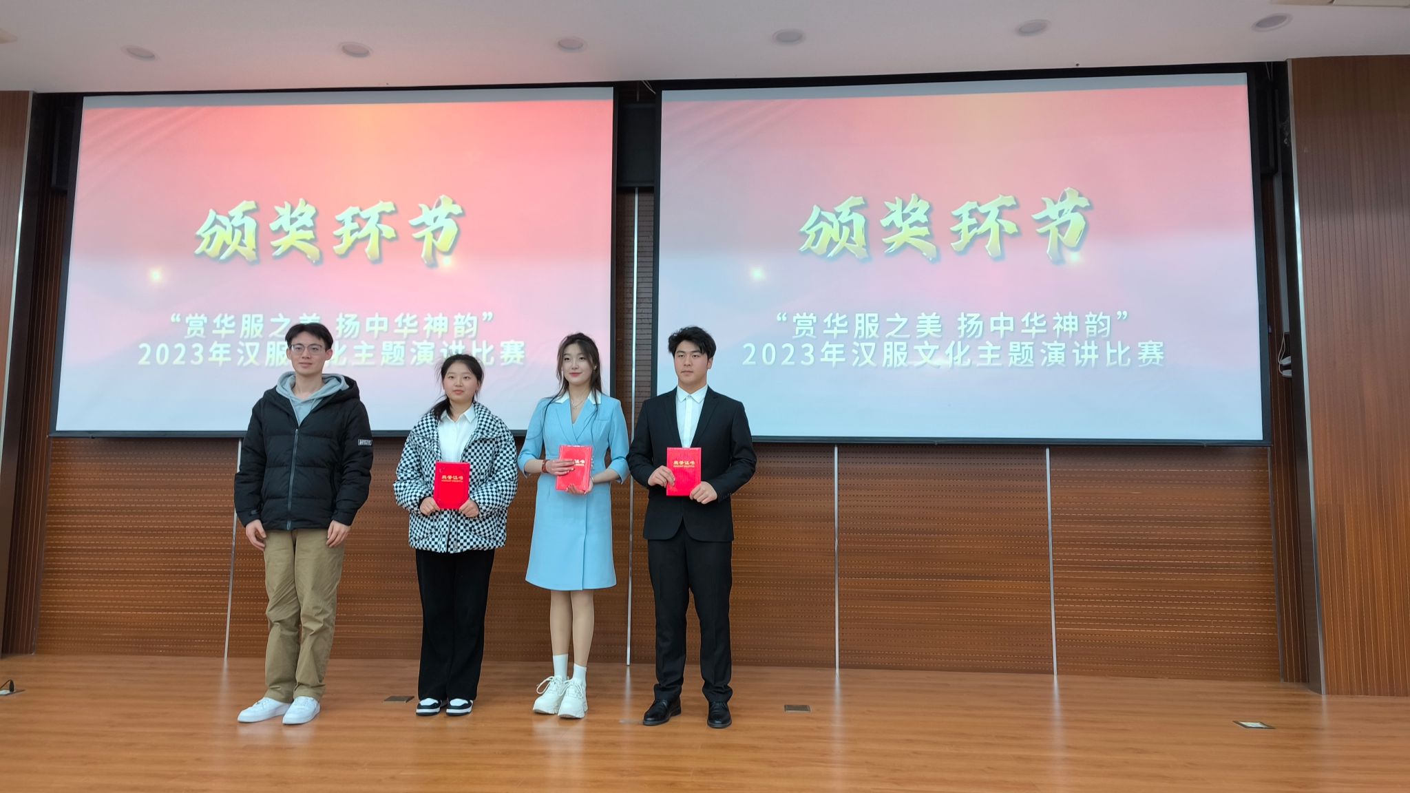 本次演讲比赛分为专业组(播音与主持艺术专业学生)和非专业组两个赛道。经过初赛筛选,两赛道各有8名和7名选手脱颖而出,成功晋级决赛。决赛现场,专业组选手均展现出自己的专业功底,紧扣主题,结合自身的经历和感受,用稳健的台风和清晰的逻辑,以及丰富的素材表达了自己对于汉服和汉文化的理解和体悟。非专业组选手也毫不怯场,有的选手身穿传统服饰来到现场,直观地表达出自己对于汉服文化的热爱;有的选手沉着冷静,全脱稿演讲,讲述着自己与汉服的不解之缘。选手们不仅展现出舞台上的自信,更是展现出坚定的文化自信与青年风采。他们充满感染力的演讲,赢得了现场观众的阵阵掌声。