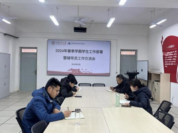 学院层面。开学第一天,学院就召开党政联席会安排部署开学相关工作,特别强调多措并举做好学生安全稳定工作,为学生有序开展校园学习生活做好保障。2 月29 日上午,学院召开春季学期学生工作部署暨辅导员工作交流会,学院党委副书记鱼园、团委书记陆瑞成、辅导员张苹、王春元、杜倩参加会议。会上,鱼园首先传达了学校安全稳定工作会的会议精神及要求,强调各年级辅导员要牢固树立以生为本理念,高度重视校园安全稳定,积极做好开学阶段学生安全风险隐患排查和安全教育工作。全体辅导员通过交流讨论结合学院学生特点,对春季学期安全稳定工作进行研判部署,拟定工作方案。随后,各辅导员结合本人负责专项工作情况对近期工作进行交流汇报。