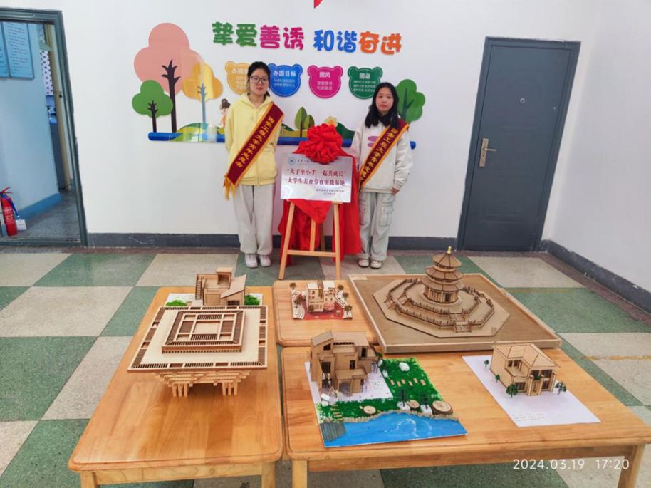为进一步落实教育部《关于全面实施学校美育浸润行动的通知》文件精神和教育厅、学校相关工作要求,城市学院发挥“艺工”结合专业优势,赴永利官网幼儿园开展“行走的建筑学”美育浸润行动,让大学生制作的建筑模型成为小朋友喜爱的中国“乐高”,让中国建筑美学在孩子心中留印。幼儿园园长郭西平、城市学院党委副书记鱼园共同为“大手牵小手一起共成长”大学生美育劳育实践基地揭牌,幼儿园与城市学院相关老师、志愿者参加揭牌仪式。