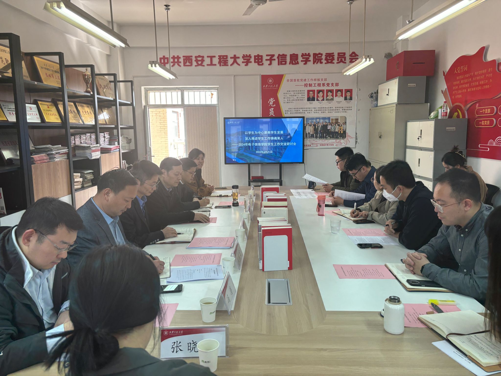 3月21日,在电信楼416会议室,电子信息学院召开了“以学生为中心聚焦学生发展,深入推进学生工作铸魂育人”主题学生工作交流研讨会,党委学工部部长王志、党委研工部部长臧国强、校团委书记刘俊富、党委学工部副部长冯涛、电信学院党委书记杨友谊、学院信通系主任、2022级信通系导师团团长张晓丹受邀参加,电信学院全体专兼职辅导员参加,会议由学院党委副书记周晓惠主持。