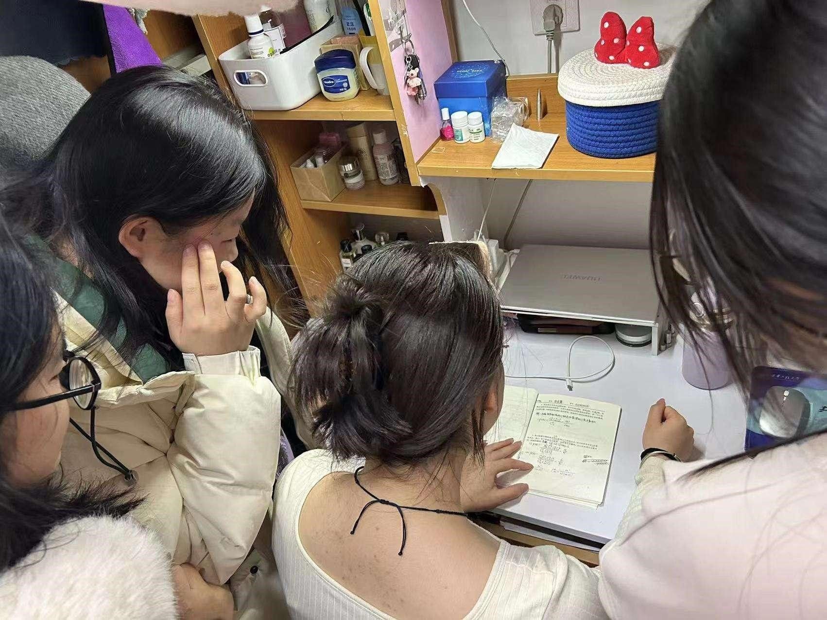 学生们在宿舍,采用一对一精准帮扶的方式,解答疑问、辅导课程、研讨问题,将宿舍变成了学习氛围浓厚的“小课堂”;在自习室,领学同学化身“小教师”,认真备课、集中讲授、练习辅导,特殊的“师生角色”极大地提高了学生的参与度。每次帮扶讲课前,领学学生都会认真备课、明确学习任务,帮助参与同学积极完成学习任务,同时将个人手写笔记分享到学习群中,以线上线下相结合的方式,强化同学们的学习自觉自律,加深对知识的理解与领悟。