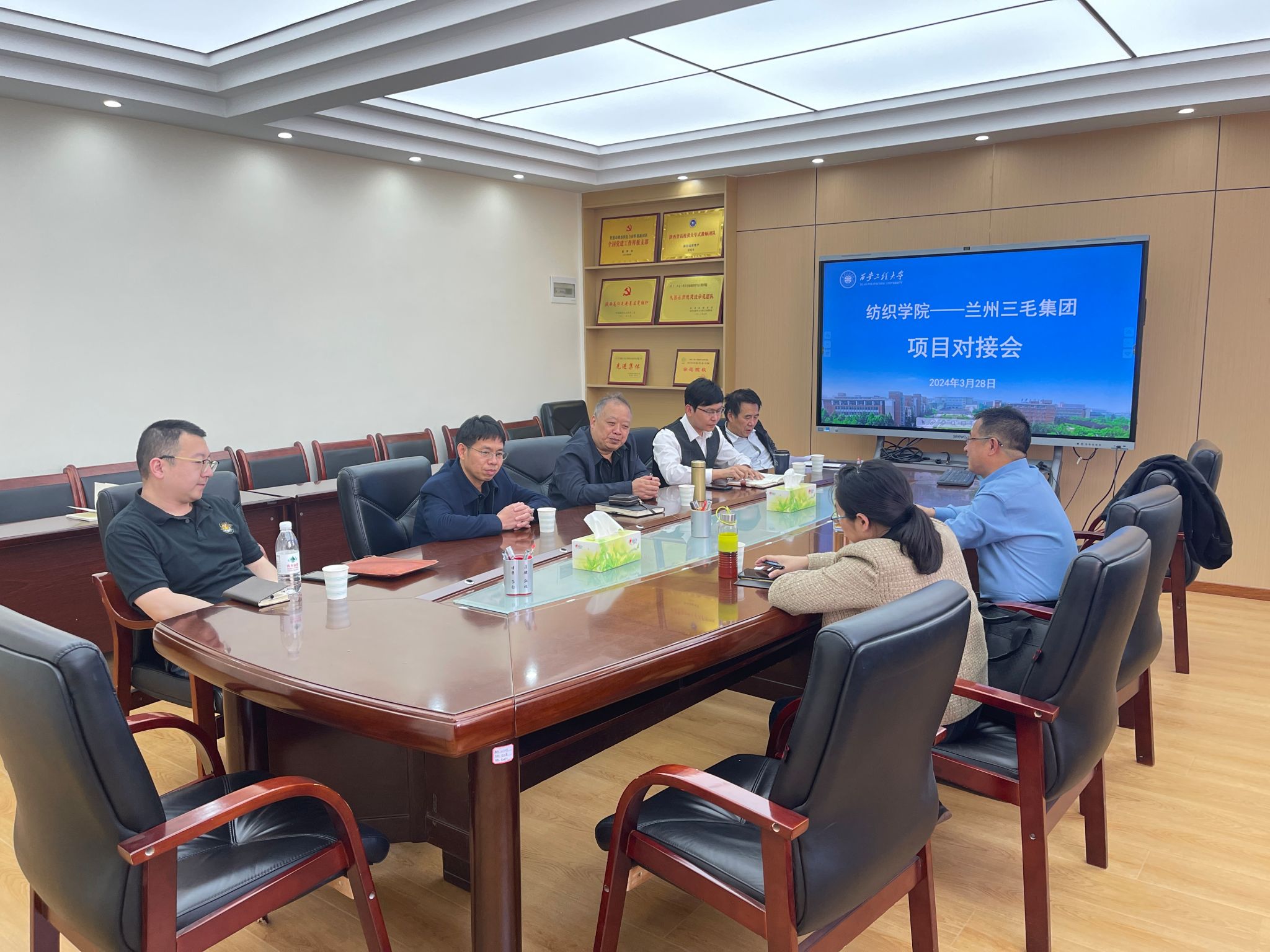 3月28日,兰州三毛纺织(集团)有限责任公司总经理李文全一行赴yL23411永利官网登录纺织科学与工程学院开展项目合作对接活动。纺织科学与工程学院院长孙润军,副院长樊威,学院教师张得昆教授、徐成书教授及赵舟博士参加了此次活动,会议由樊威主持。