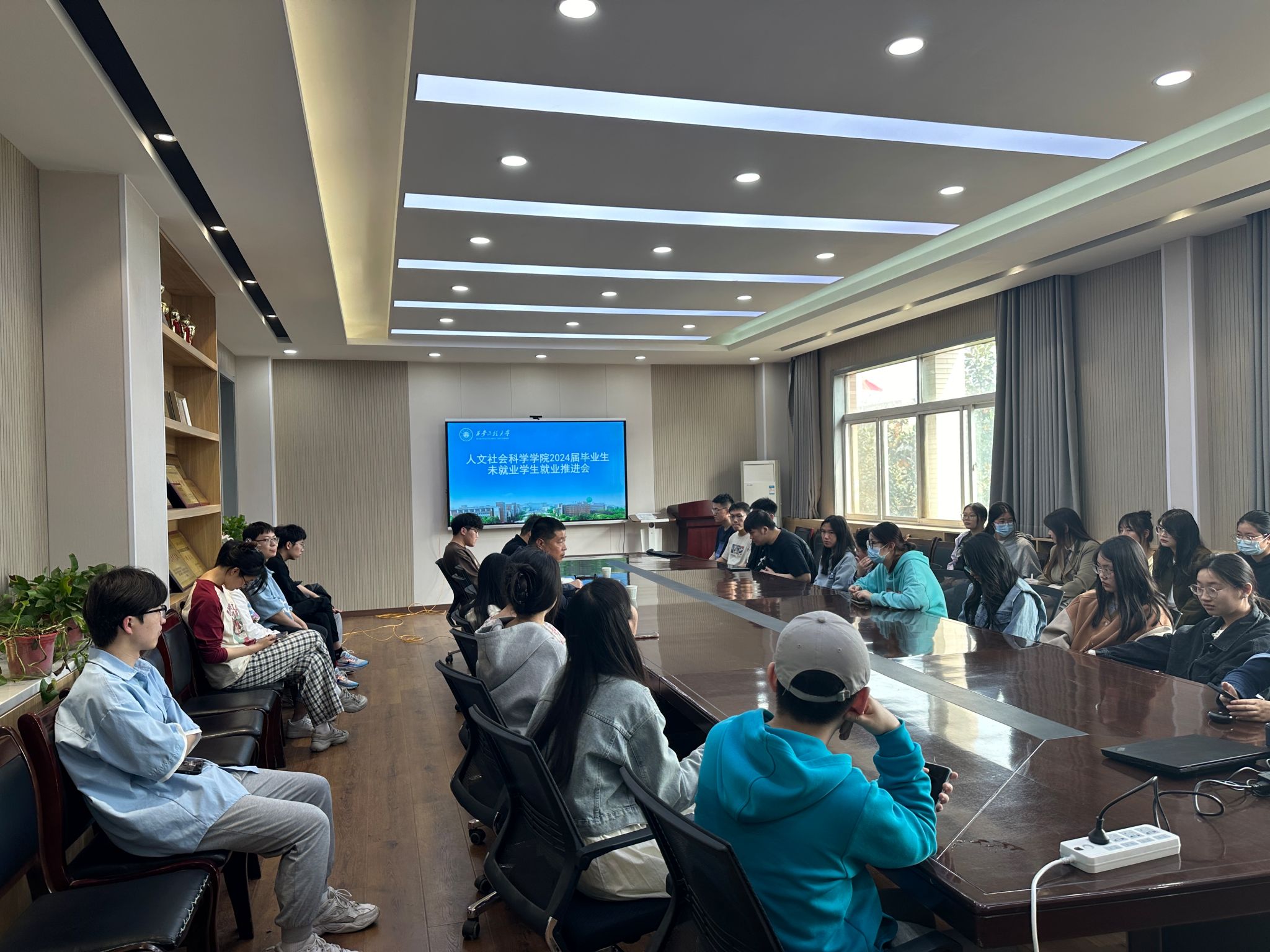 4月8日下午,人文社会科学学院在人文楼326会议室召开2024届未就业学生就业推进座谈会。学校招生就业工作处副处长(主持工作)付刚、学院党委副书记赵立涛、辅导员王德利以及40余名未就业学生参加会议。会议由赵立涛主持。