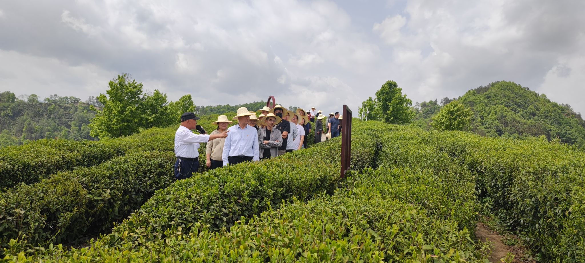 19日下午,大家首先来到位于老县镇蒋家坪村的女娲凤凰茶业现代示范园区。清晨的春雨过后,午后的茶山上阳光明媚、绿意盎然,蒋家坪村原支部书记罗显平带领大家领略茶山风光,并详细介绍了习近平总书记考察时的情况。2020年4月21日,习近平总书记在陕西考察时,曾来到安康市平利县老县镇,先后走进锦屏社区、锦屏社区工厂、老县镇中心卫生院、老县镇中心小学、蒋家坪村凤凰茶山,亲切慰问易地搬迁群众,详细询问生活、收入、就医、教育、产业等情况。就在凤凰茶山,他边走边察看茶树的长势并在与茶农的交谈中指出:人不负青山,青山定不负人。绿水青山既是自然财富,又是经济财富。希望乡亲们坚定不移走生态优先、绿色发展之路,因茶致富、因茶兴业,脱贫奔小康。作为习近平总书记当时考察茶山时的见证人,罗显平老书记满怀激情地讲述了总书记在茶山上考察的细节,总书记的一言一行给乡亲们留下了深刻的印象,通过罗显平老书记的讲解,老师们也真切感受到习近平总书记心系人民,情系人民,全心全意为人民的博大情怀和使命担当。