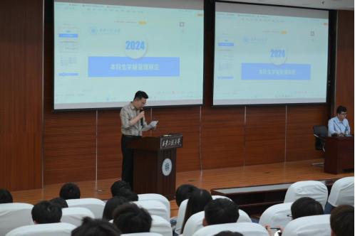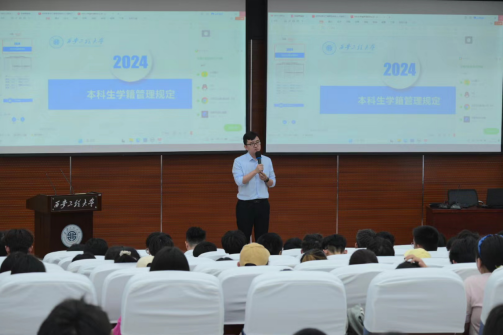 同时师文钊结合2023级人才培养方案,从专业培养规划、课程设置、专业核心课程、实践环节、毕业条件等多维度出发,给新生做了全面而细致的介绍。最后,师文钊还对学校的各项管理及规章制度做了介绍,并提出了一系列本科生四年学习规划的贴心建议。