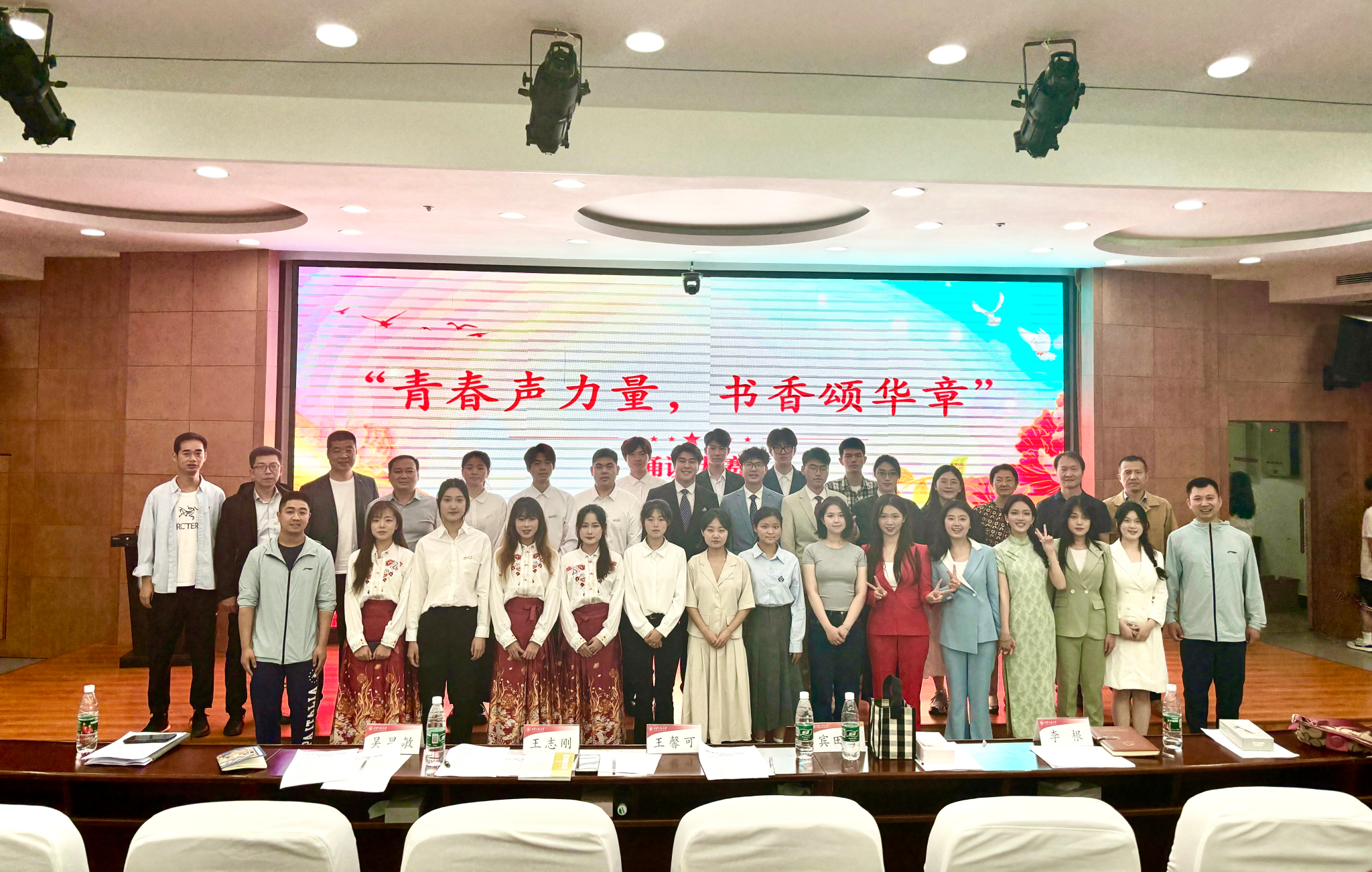 5月7日下午,在世界读书日和五四青年节来临之际,由校团委主办,管理学院承办的“青春声力量,书香颂华章”诵读大赛决赛在临潼校区图书馆一楼报告厅顺利举办,校团委书记刘俊富、管理学院党委书记王爱华出席活动,辅导员王馨可、宾田田、王志刚、吴昌敏、李根应邀担任比赛评委,新媒体、人文、服装、管理等学院党委副书记及学生180余人参加活动。