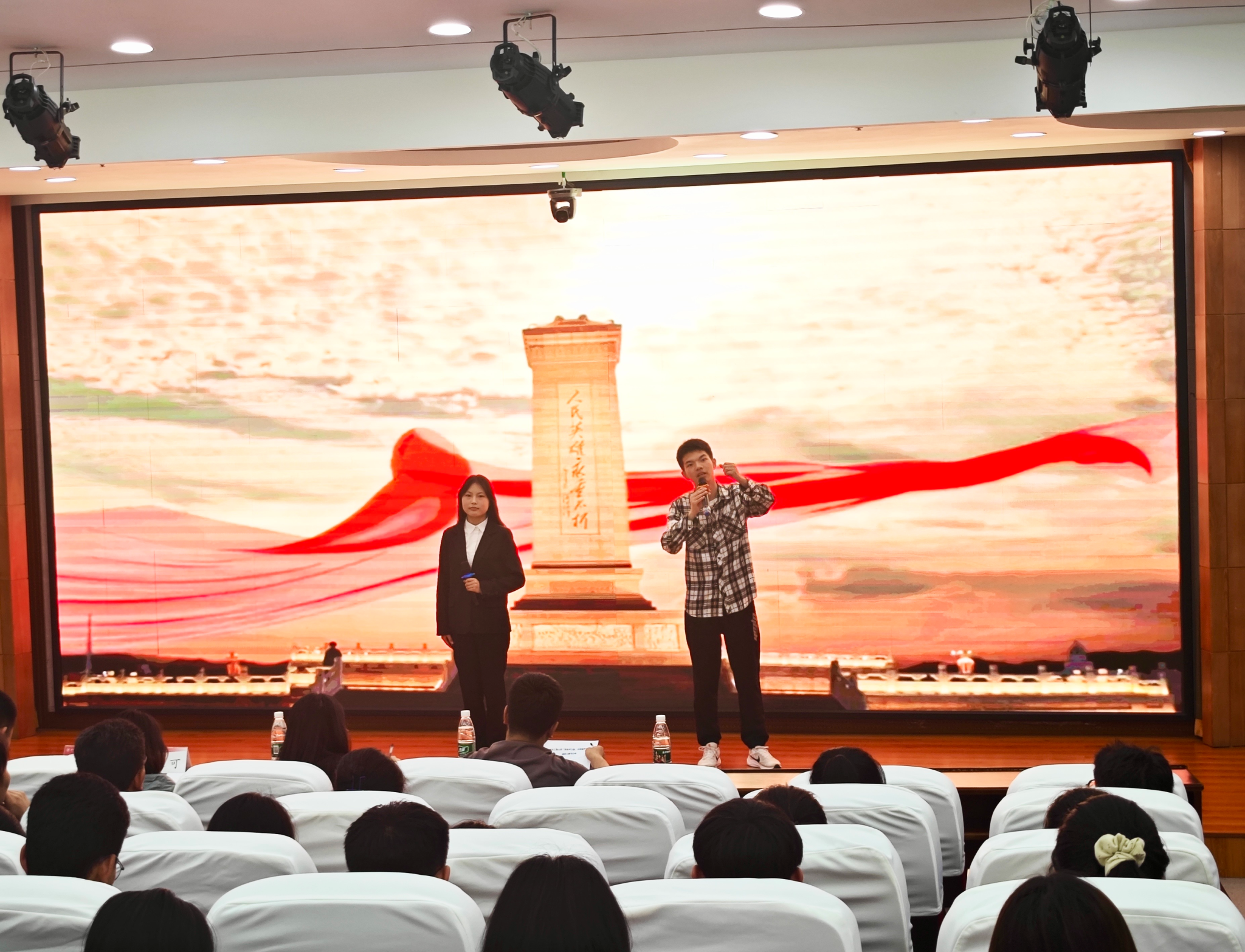 刘俊富首先致辞,他指出中华文化博大精深、源远流长,其中蕴含着深厚的民族正气、爱国情怀和道德品质,通过诵读这一形式,能够帮助青年学子以声传情、以声明志,更深入地理解中华优秀传统文化的精髓,感受经典的魅力。他勉励参赛同学要珍惜机会,全力以赴;要团结协作,共同进步;要不断学习,追求卓越,以赛促学,进一步培养自身的道德修养,增强文化自信和社会责任感。