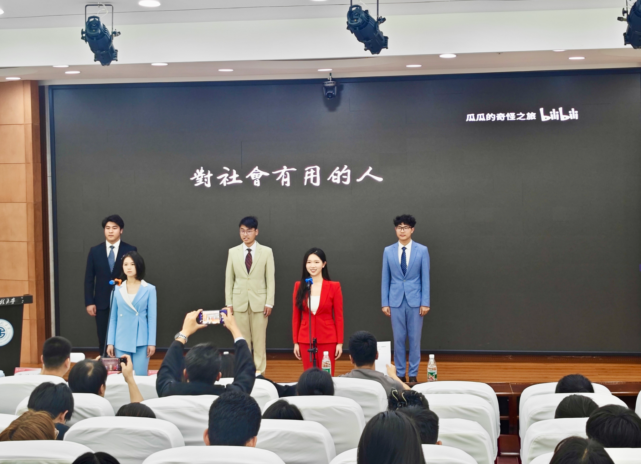 决赛现场,参赛同学用他们饱满的情绪、精湛的演绎和鲜明的特色依次呈现了一场场精彩绝伦的视听盛宴。《在中国大地上报道》立足专业讲述了一代代中国传媒人传播中国声音、讲述中国故事的光辉事迹,《老人与海》向可爱的小平同志致敬,将老人与海的故事娓娓道来,《秦腔》聚焦秦腔艺术,展示了中国传统戏曲的独特魅力,《以青春的名义》《青春中国》则表达了愿以青春之我,创建青春之中国的青年声音。他们带领观众从传统到当代,从戏曲到人文,从奋发图强到青春中国,充分展现出了新时代青年学子的风采与担当,博得现场阵阵掌声。