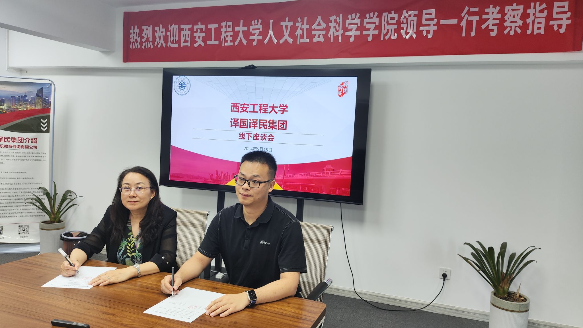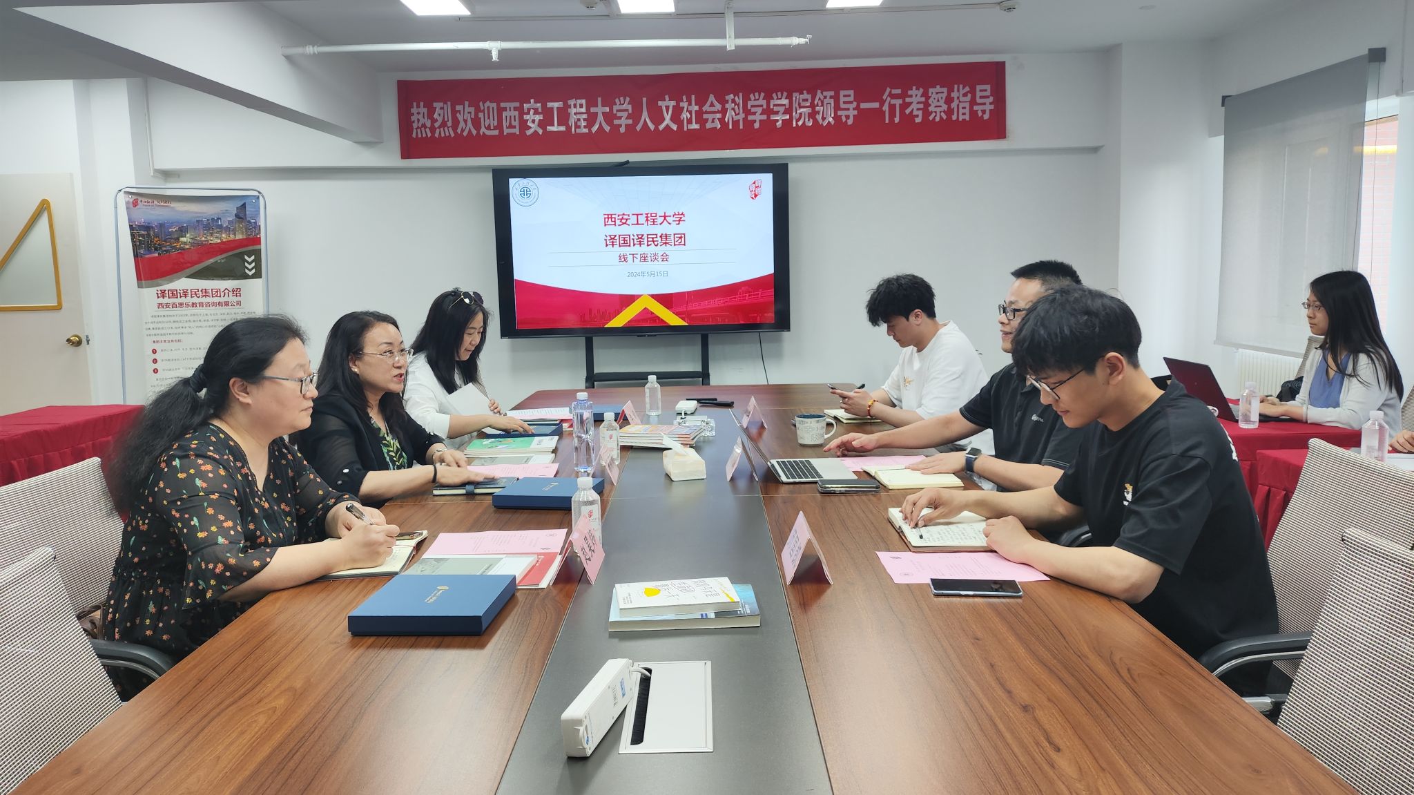 座谈中,陈莉霞首先介绍了人文学院语言类专业人才培养总体情况,重点介绍了学院2024届毕业生情况,表达了学院与企业在人才培养、教学科研等方面开展深入合作的强烈愿望。译国译民集团西安分公司总经理吴强详细介绍了公司在校企合作领域的丰硕成果和丰富经验,并表示将全力支持学院各项合作需求,共同推动校企双方人才培养,助力学科发展。