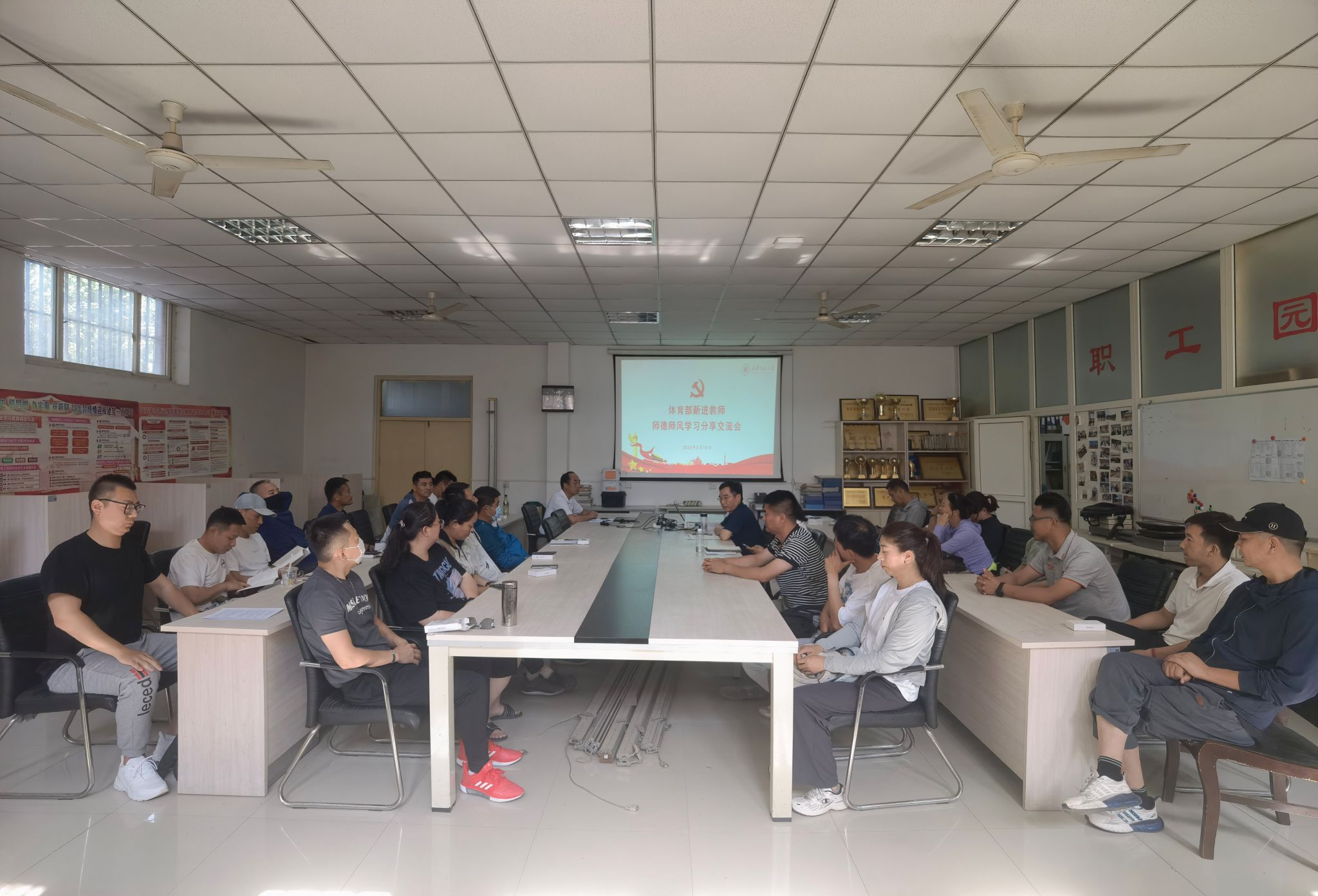 5月15日下午,体育部在金花校区召开师德师风教育暨新入职教师岗前专题学习交流会,会议由体育部直属党支部书记张清录主持,部门全体教职工参加了会议。