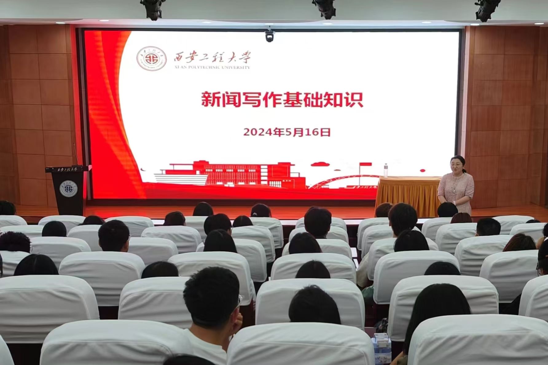 5月16日晚,由学生工作部(处)主办,电子信息学院、人文社会科学学院、管理学院协办的“援梦计划”勤工助学岗前培训第一讲学生新闻写作能力培养提升专题辅导在临潼校区图书馆一楼报告厅开讲。全校近200名勤工助学学生参与培训,电子信息学院组织员张琪担任主讲,学生工作部(处)学生资助中心华宁主持培训。