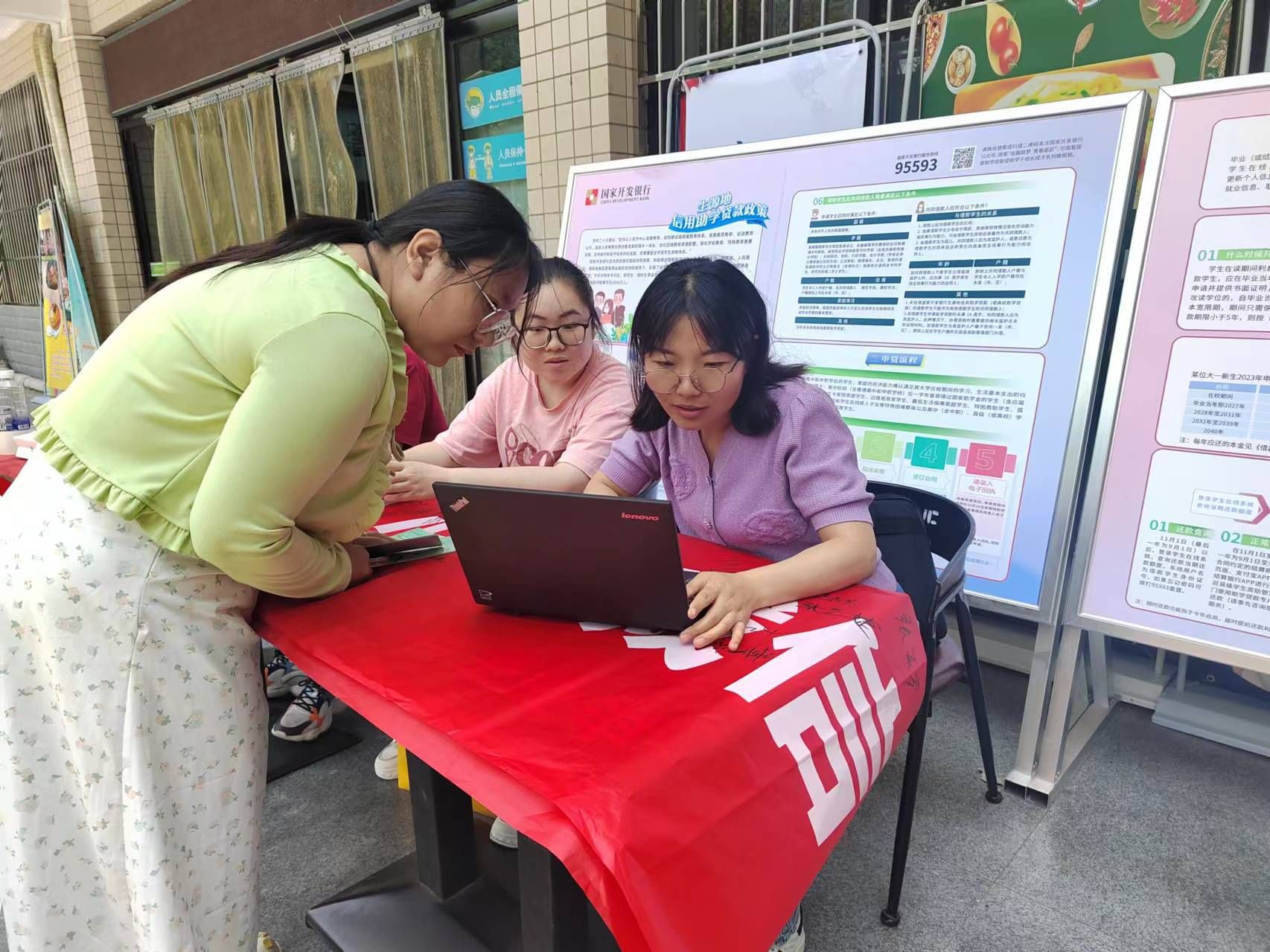 此次政策宣传活动主题为”学费不用愁!2024年生源地助学贷款政策欢迎来咨询”,走进“一站式”学生社区,大力宣传国家生源地信用助学贷款政策和倡导毕业生诚信还款活动。活动期间,各学院学生积极参与国家生源地信用助学贷款政策咨询活动,2024届有生源地贷款的毕业生现场咨询毕业确认流程、变更还款计划手续等政策并参加诚信还款签名活动,活动受到广大学生的欢迎。