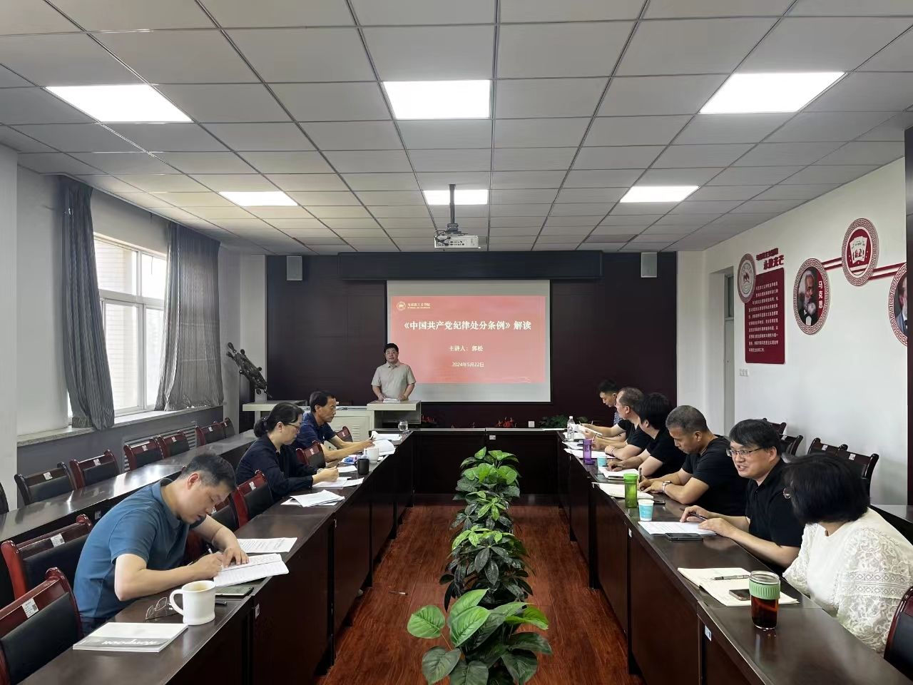 5月22日,马克思主义学院党委召开学习习近平总书记对思政课建设作出的重要指示精神暨党纪学习教育之警示教育专题学习会,学院党委理论学习中心组成员、各党支部书记参加了会议,会议由学院党委书记杨永革主持。