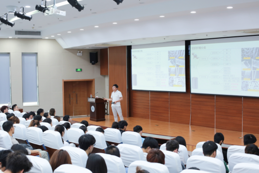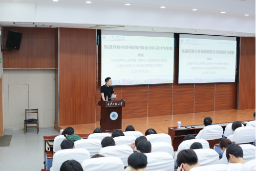 会议伊始,樊院长首先以学长的身份向在场学生讲述了自身的成长过程,提醒学生一定要珍惜在校的学习时间,不要虚度光阴。之后樊老师向在座师生讲述其最近的重大科研成果以及纺织专业未来智能化的发展前景,这极大的坚定了学生从事纺织、热爱纺织的信心。讲座结束后,樊老师针对部分学生的疑惑又一一详细回答,并提醒学生本科四年打好基础,为之后的科研道路做好铺垫。